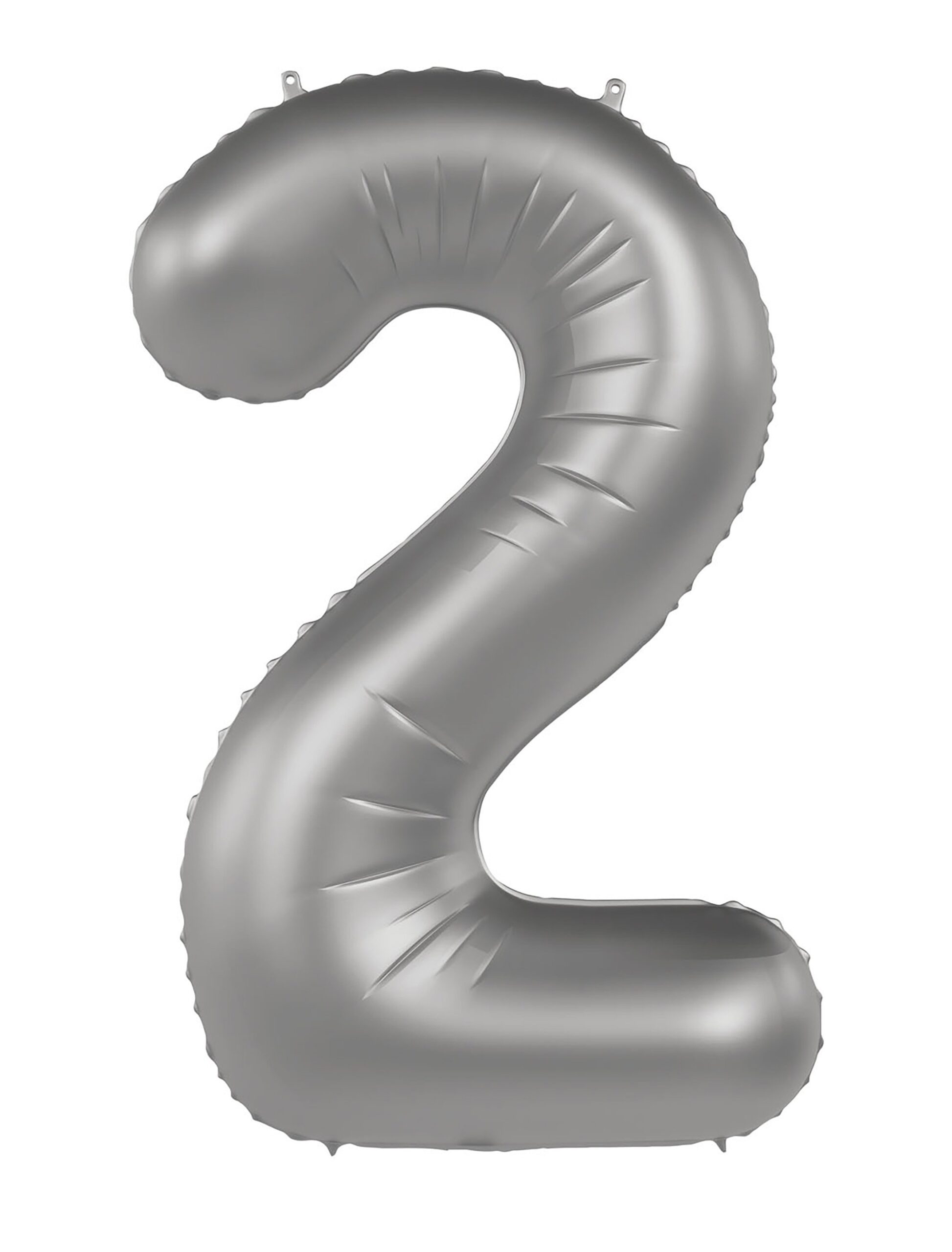 Folienballon Zahl 2 L matt silber, ideal für Geburtstag / Jubiläum