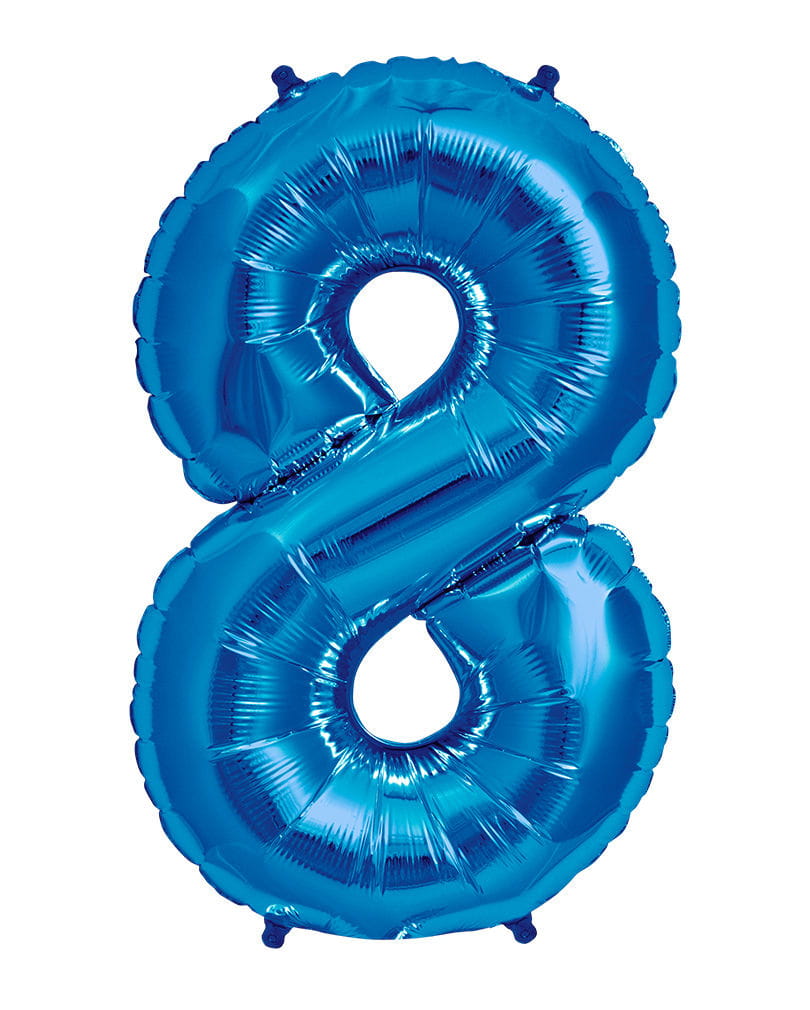 Folienballon Zahl 8 Blau Riesenzahl Folienballon mit der Zahl 8 als Motiv Mit einem blau glänzenden Folienballon mit der Zahl Acht als Motiv lassen sich die verschiedensten Nummern zusammenstellen und damit zu zahlreichen Anlässen zu einer fantastischen Luftballon Dekoration kombinieren. Mit mehreren Riesenzahl Folienballons lassen sich die verschiedensten Jahreszahlen darstellen und damit ist der Folienballon mit der Riesenzahl Acht perfekt für Geburtstage und Jubiläen einzusetzen. Der blaue Folienballon Zahl 8 besteht aus einer Polyethylenfolie auf der eine glänzende Aluminiumfolie aufgedampft wurde und zeigt als Motiv die Ziffer Acht. Lieferumfang: 1 x Folienballon Zahl 8 Farbe: Blau Größe: ca. 86 x 41 cm Material: Polyethylen und Aluminium Der Folienballon mit Nummer wird unbefüllt versendet Der Folienballon mit Nummer kann mit Helium oder Luft befüllt werden Achtung: Nicht für Kinder unter 3 Jahren geeignet, da Kleinteile verschluckt werden können. Der Folienballon mit Nummer wird unbefüllt versendet und kann später von dir mit Helium oder Luft befüllt werden.