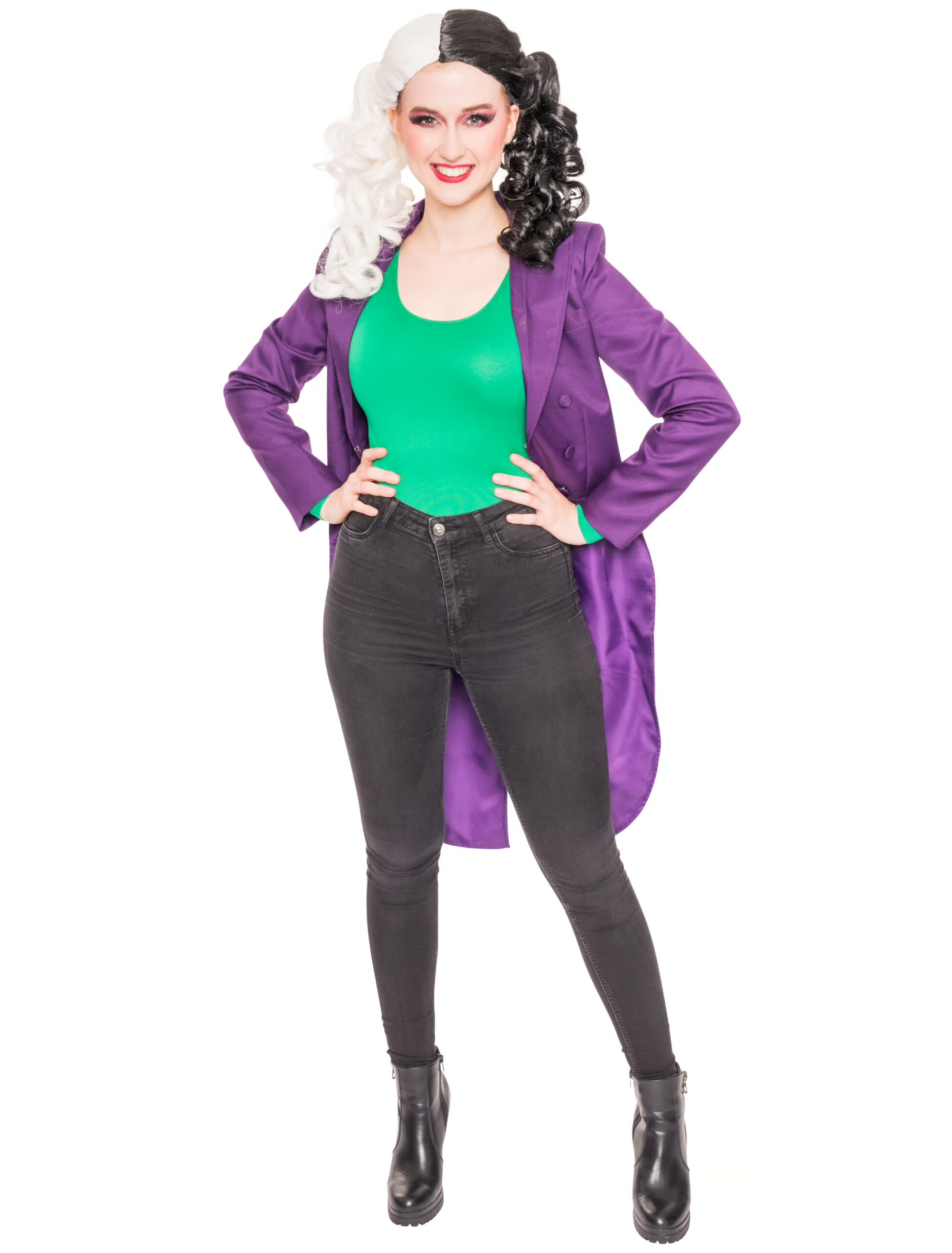 Ein Frack, aber zahlreiche Möglichkeiten! Mit diesem tollen Kleidungsstück, das durch den lilafarbenen Stoff und dem außergewöhnlichen Schnitt (vorne kurz, hinten lang) besticht, sind Deiner Kreativität keine Grenzen gesetzt: Der Frack für Damen eignet sich hervorragend als Hingucker für schaurig-schöne Clown-, Schurkin-, Vampir- und Gothic-Kostüme, aber genauso gut auch für klassische Verkleidungen. Die edle Jacke lässt sich in der Front bequem mit einem Haken verschließen und ist mit stoffbezogenen Knöpfen verziert.
