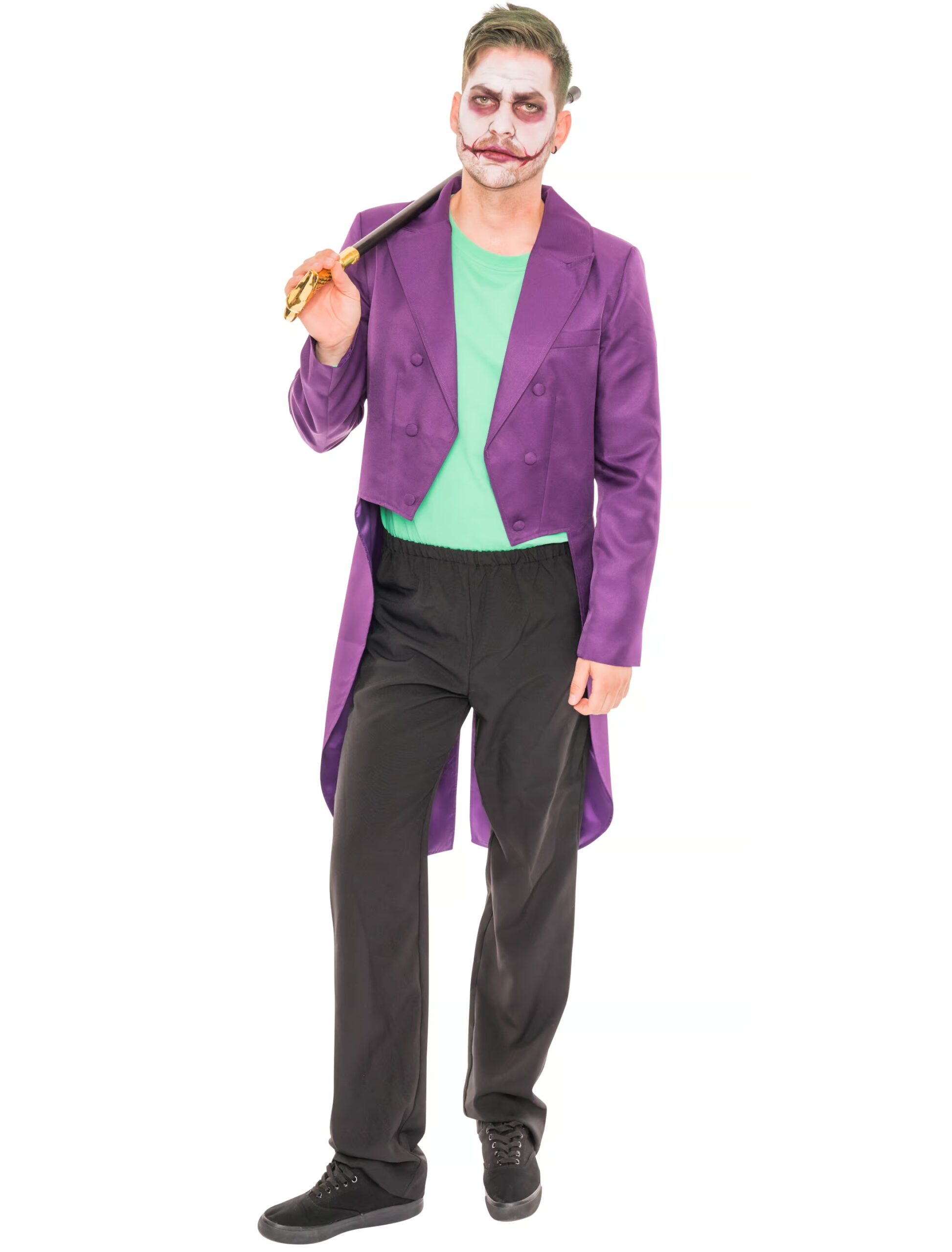 Dieser extravagante Frack für Herren ist in Kombination mit Accessoires und einer gruseligen Gesichtsschminke nichts für schwache Nerven! Der Frack ist aus einem lilafarbenen Stoff gefertigt, der in der Front mit einem tiefen Revers und sechs gleichfarbigen, stoffbezogenen Knöpfen verziert ist. Der außergewöhnliche Schnitt (vorne kurz, hinten lang) macht den Herren Frack zu einem modischen Begleiter auf jeder Halloweenparty. Er ist das perfekte Kleidungsstück für Joker-, Gruselclown- oder Zombie-Kostüme!