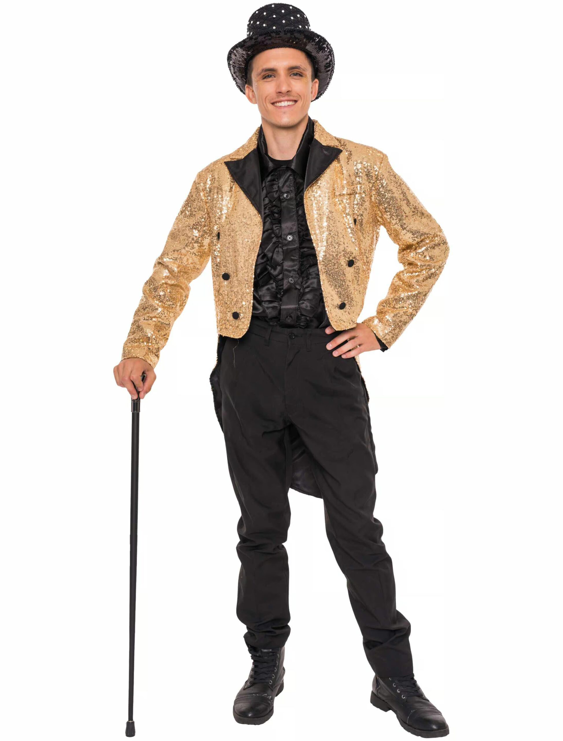 Bist du bereit, zum funkelnden Star der Nacht zu werden? Mit unserem Pailletten-Frack für Herren verwandelst du jede Party in deinen persönlichen Laufsteg – denn wer braucht schon Disco-Kugeln, wenn du selbst leuchtest wie eine? Egal ob du als Showmaster oder Zirkusdirektor auftrittst – dieses Teil bringt dein Outfit auf ein ganz neues Level. Ob Karneval, Motto-Party oder einfach ein Abend, an dem du zeigen willst, dass du das Leben buchstäblich glitzern lässt – mit diesem Frack bist du immer der Mann des Abends. Also, schnapp dir unseren Pailletten-Frack für Herren und strahle wie ein Superstar!