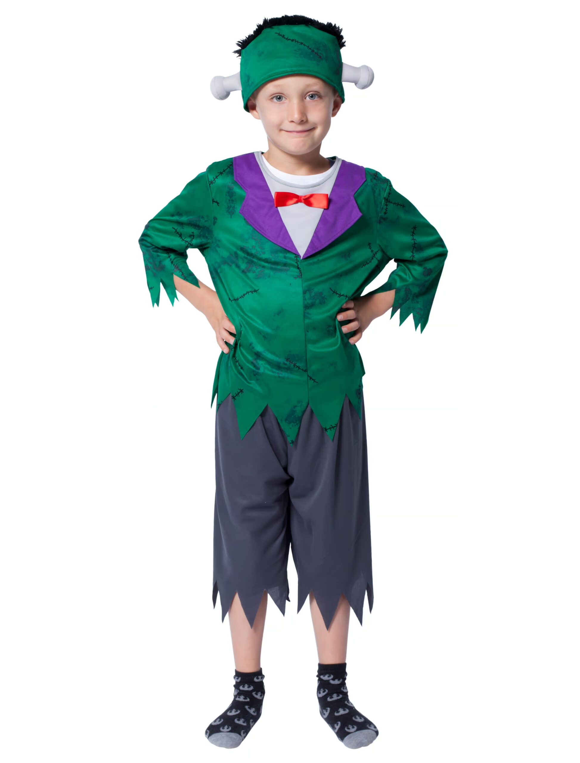 Frankenstein 3-tlg. grün/schwarz 128, ideal für Karneval & Fasching