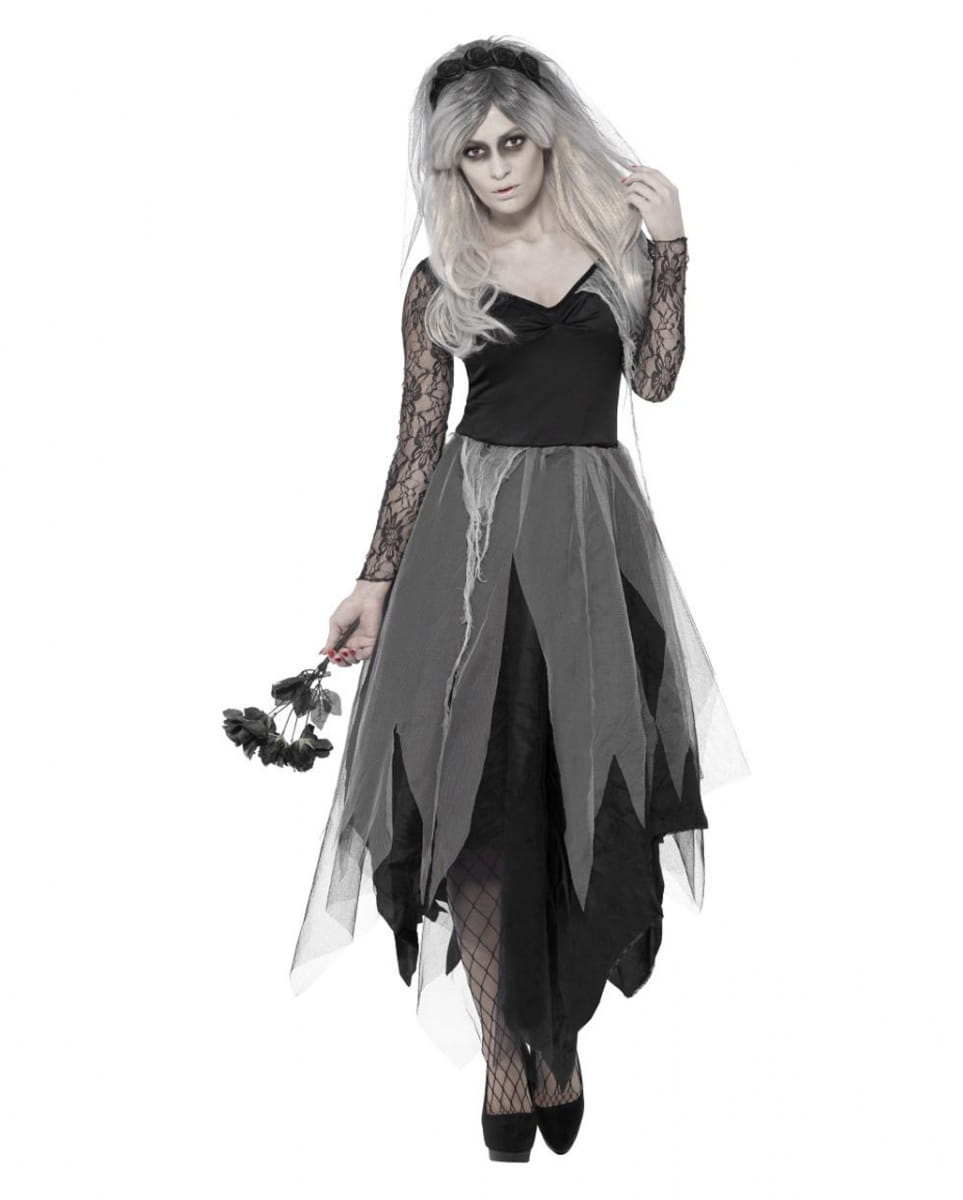 Friedhofs Braut Kostüm mit Rosenschleier für Halloween Gespensterbraut-Verkleidung für deinen Auftritt als lebende Tote Bis dass der Tod euch scheidet? Oh nein! Suche mit unserem Friedhofs Braut Kostüm mit Rosenschleier für Halloween als Geist kostümiert die Lebenden heim auf den nächsten Walpurgisnacht-Feiern und unheimlichen Mottopartys! Das Friedhofs Braut Kostüm mit Rosenschleier für Halloween besteht aus einem Kleid und einem Haarreif mit Schleier. Das Kostümkleid der Geisterwitwen-Verkleidung weist eine zerrissene Optik auf, wie es sich für lebende Tote gehört. Im Stil eines Brautkleids mit Ärmeln in Netzoptik gehalten, sorgen die düsteren Farben der Halloween-Verkleidung für einen gruseligen Effekt. Der Schleier des Geister-Kostüms ist an einem schwarzen Haarreif befestigt und mit Rosen geschmückt. Lieferumfang: 1 x Friedhofs Braut Kostüm mit Rosenschleier für Halloween Inhalt: 1x Kostümkleid, 1x Haarreifen mit Schleier Farbe: Schwarz/Grau Größe: S, M, L, XL, XXL Material: 100% Polyester Perücke, Brautstrauß und Strumpfhose nicht enthalten! Abmessungen S 36/38 M 40/42 L 44/46 XL 48/50 XXL 52/54 Brustumfang ca. 88-90 cm ca. 94-98 cm ca. 102-107 cm ca. 112-117 cm ca. 121-127 cm Taillenumfang ca. 67-70 cm ca. 75-77 cm ca. 81-86 cm ca. 91-97 cm ca. 101-106 cm Hüftumfang ca. 94-97 cm ca. 100-104 cm ca. 108-113 cm ca. 119-124 cm ca. 129-134 cm