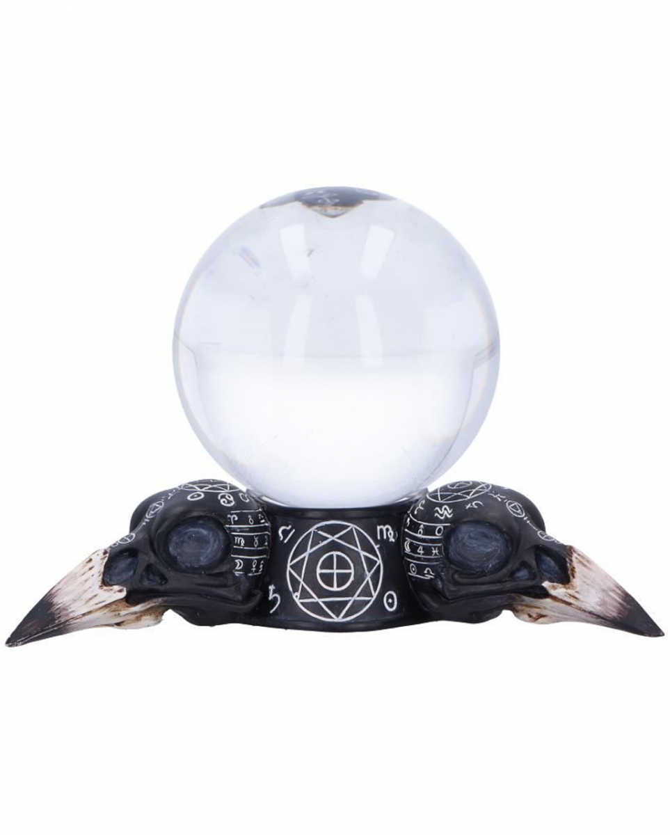 Future of the Raven Kristallkugel mit Halter als mystische Deko 15cm Kristallklare Wahrsagekugel auf Rabenköpfen mit okkulten Symbolen Du liebst die mysteriöse Welt der Gothic Deko? Stelle dir vor, wie das Licht sanft durch die Future of the Raven Kristallkugel mit Halter bricht und geheimnisvolle Schatten an die Wände wirft. Die Rabenköpfe halten die Kugel und fangen alle Blicke ein. Die Future of the Raven Kristallkugel mit Halter ist ca. 10 x 15 x 15 cm groß und besteht aus hochwertigem Polyresin (Kunststein) und Glas. Die detaillierten Rabenköpfe sorgen für ein geheimnisvolles Flair und verleihen jedem Raum eine besondere Note. Lieferumfang: 1 x Future of the Raven Kristallkugel mit Halter 15cm Farbe: Schwarz, Transparent, Beige, Blau, Weiß Größe: ca. 10 x 15 x 15 cm Material: Polyresin (Kunststein), Glas Kristallklare Glaskugel auf Rabenköpfen Rabenköpfe sind mit okkulten Symbolen verziert Geniale Deko und Geschenkidee für Gothics Der Artikel ist ein Gothic Wohnaccessoire für Erwachsene und kein Spielzeug. Nicht für Kinder unter 3 Jahren geeignet. Kann Kleinteile enthalten, die verschluckt werden können – Erstickungsgefahr. Von Feuer und offenen Flammen fernhalten.