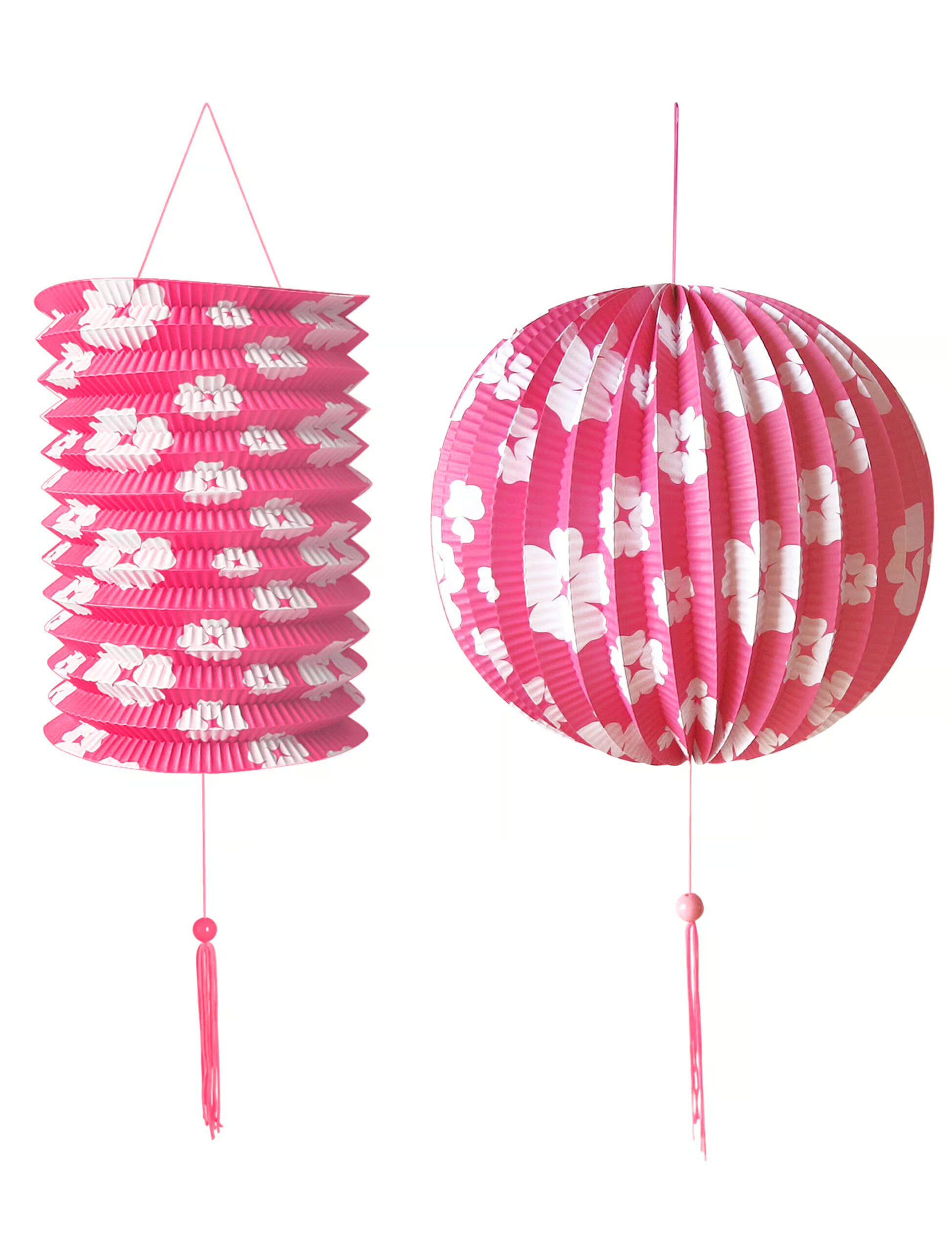 Hübsche Dekoration für Deine nächste Gartenparty! Mit diesem Set, bestehend aus Lampion und Laterne, verleihst Du Deinem Garten oder Balkon eine ganz besondere Note. Verziert ist die sommerlich-pinke Deko mit Hibiskusblüten sowie jeweils einer schicken Kordel. Echte Blickfänge!