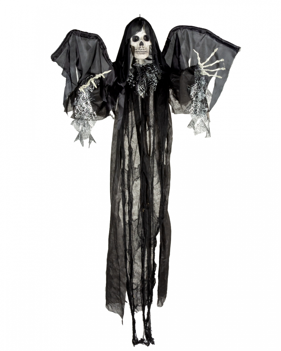 Sensenmann Hängefigur mit Licht und Soundeffekt 180cm Eindrucksvoller Reaper mit LED Augen und Sound als schaurige Hängedekoration für Halloween Stell dir vor, die Gäste deiner Halloween Party bekommen alle eine Gänsehaut. Verwandele dein Zuhause in eine echte Geisterbahn mit unserer Sensenmann Hängefigur mit Licht und Soundeffekt, um deine Gäste in schaurig-schöne Halloween Stimmung zu versetzen. Die Sensenmann Hängefigur mit Licht und Soundeffekt ist 180 cm groß. Die roten LED Augen verleihen ihm einen furchteinflößenden Blick, gruseligen Schreie, die durch laute Geräusche wie Klatschen oder Berührung ausgelöst werden, sorgen ebenso für Schrecken. Lieferumfang: 1x Sensenmann Hängefigur mit Licht und Soundeffekt 180cm Farbe: Schwarz, Silber, Weiß Größe: ca. 180 cm Material: Kunststoff und Polyester Batterien: 3x LR44 Batterien, nicht im Lieferumfang enthalten Blinkende rote LED Augen Gräsliches Schreien und Geräusche wird durch lauter Geräusche (Klatschen) und Berührung ausgelöst imposante 1,80 Meter groß Der Artikel ist eine Halloween Deko Figur und kein Spielzeug. Nicht für Kinder unter 3 Jahren geeignet. Kann Kleinteile enthalten, die verschluckt werden können – Erstickungsgefahr. Von Feuer und offenen Flammen fernhalten.