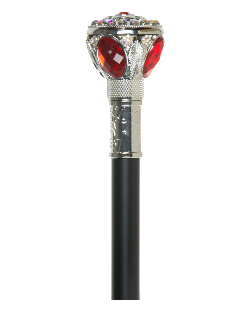 Gehstock mit silberglänzendem Knauf mit rotem gefassten Stein 95 cm Spazierstock mit rotem Dekostein als Zubehör für Kostüme Dieser Gehstock mit silberglänzendem Knauf mit rotem gefassten Stein ist ein geniales Kostümzubehör. Der edle Spazierstock verleiht deinem Outfit die nötige Eleganz, um für Aufsehen zu sorgen. Der Spazierstock für Kostüme ist ca. 95 cm lang und besteht aus hochwertigem Metall mit einem auffälligen silberglänzenden Knauf, der einen roten Stein trägt. Er ist robust und aus einem Stück gefertigt, nicht zerlegbar. Lieferumfang: 1 x Gehstock mit silberglänzendem Knauf und rotem gefassten Stein 95cm Farbe: Schwarz, Silber, Rot Größe: ca. 95 × 7 × 7 cm Material: Metall, Gummi Elegantes Kostümzubehör mit Schmuckstein Robuster Kostümschmuck ist aus einem Stück gefertigt, dieser lässt sich nicht zerlegen Aus Metall gefertigt und am Ende mit einem Gummi als Rutsch Stopp versehen Prunkvoller Gehstock und Requisite für zahlreiche Verkleidungen
