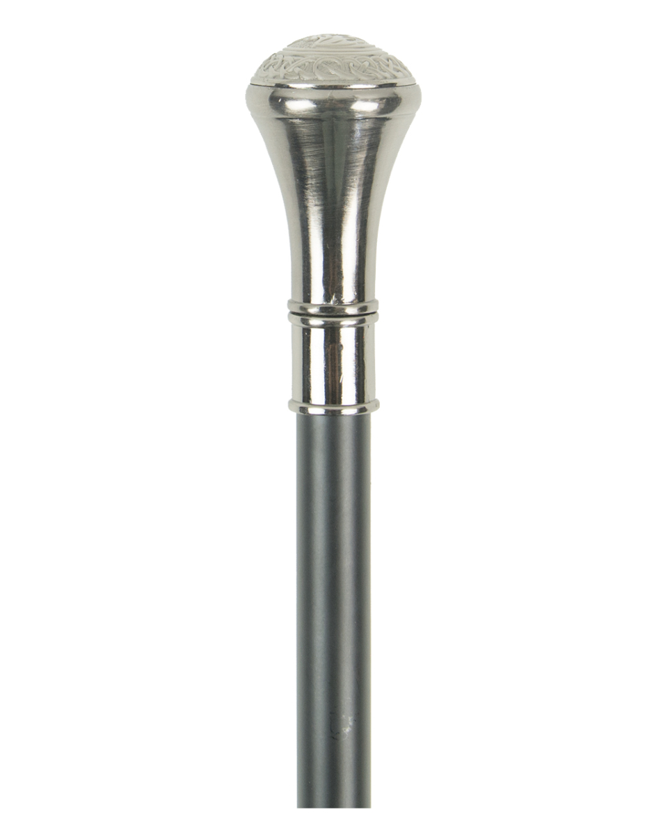 Gehstock mit edlem Fledermaus Knauf Hochwertiger Spazierstock als Zubehör für dein Vampirkostüm Mit dem Gehstock mit edlem Fledermaus Knauf kannst du an Halloween und Karneval dein Blutsauger Kostüm optimieren. Der ganze 92 cm lange Gehstock besteht aus Metall und hat am unteren Ende einen kleinen Überzug aus Gummi. Das Highlight des Spazierstocks ist der metallische Knauf mit dem Symbol einer Fledermaus und den schicken Ornamenten. Lieferumfang: 1 x Gehstock mit edlem Fledermaus Knauf Farbe: schwarz/silberfarben Länge: ca. 92 cm Material: Metall/Gummi Hochwertiger Gehstock aus Metall mit Halloween-Motiv Achtung: Der Artikel ist ein Kostümzubehör für Erwachsene und kein Spielzeug. Nicht für Kinder unter 3 Jahren geeignet. Kann Kleinteile enthalten, die verschluckt werden können – Erstickungsgefahr. Von Feuer und offenen Flammen fernhalten.
