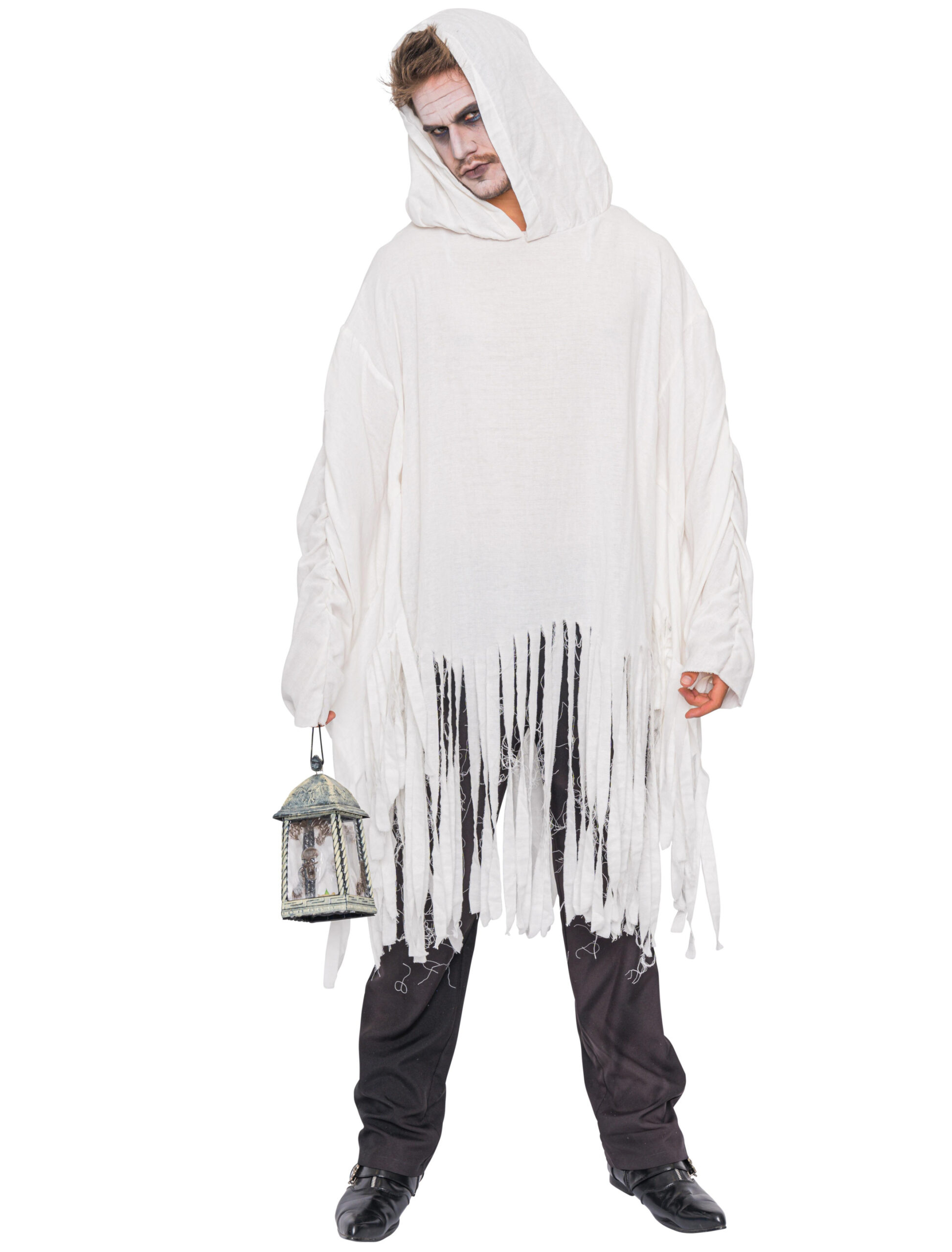 Wenn beim Anblick den Anderen ein klarer Schauer über den Rücken läuft, so kann man sich unter diesem schlichten, wie gruseligen Geisterkostüm zu Karneval und Halloween noch gut mit einer dicken Jacke warmhalten. Damit das Outfit auch besonders raffiniert, gruselig und authentisch wirkt, besticht es mit langen Fransen an den Ärmelenden wie unterhalb der Kapuze. Damit die Ärmel bequem zu tragen sind, ist der Stoff hier gerafft. Das Kostüm liegt mit seinen wilden Fransen auf den Knien auf, die Kapuze sitzt flatternd auf dem Kopf, so ist der Gruseleffekt vorprogrammiert. Buhuhuhuhuhuhuhuhu