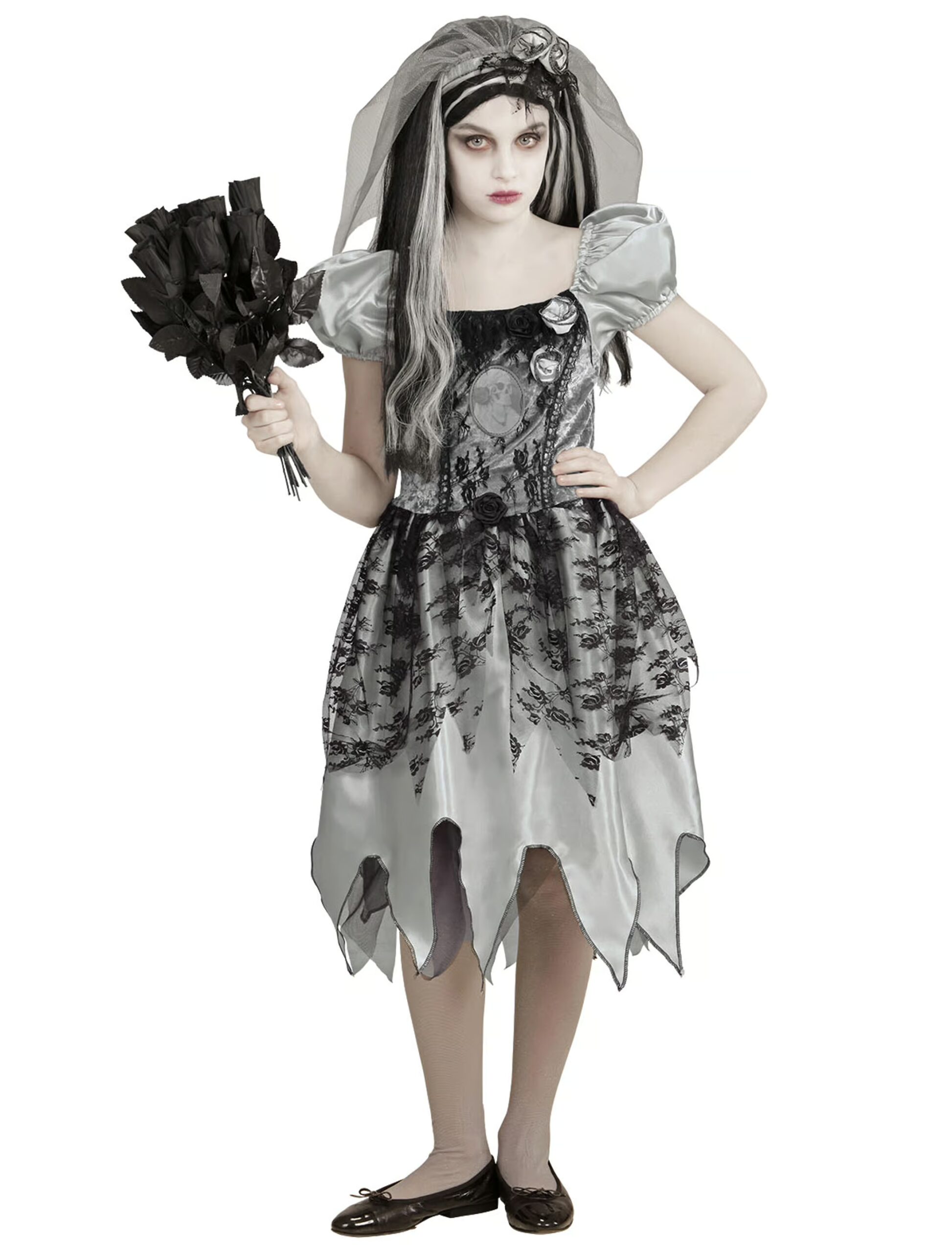 Geisterbraut Kinder 2-tlg. grau 140, ideal für Karneval & Fasching