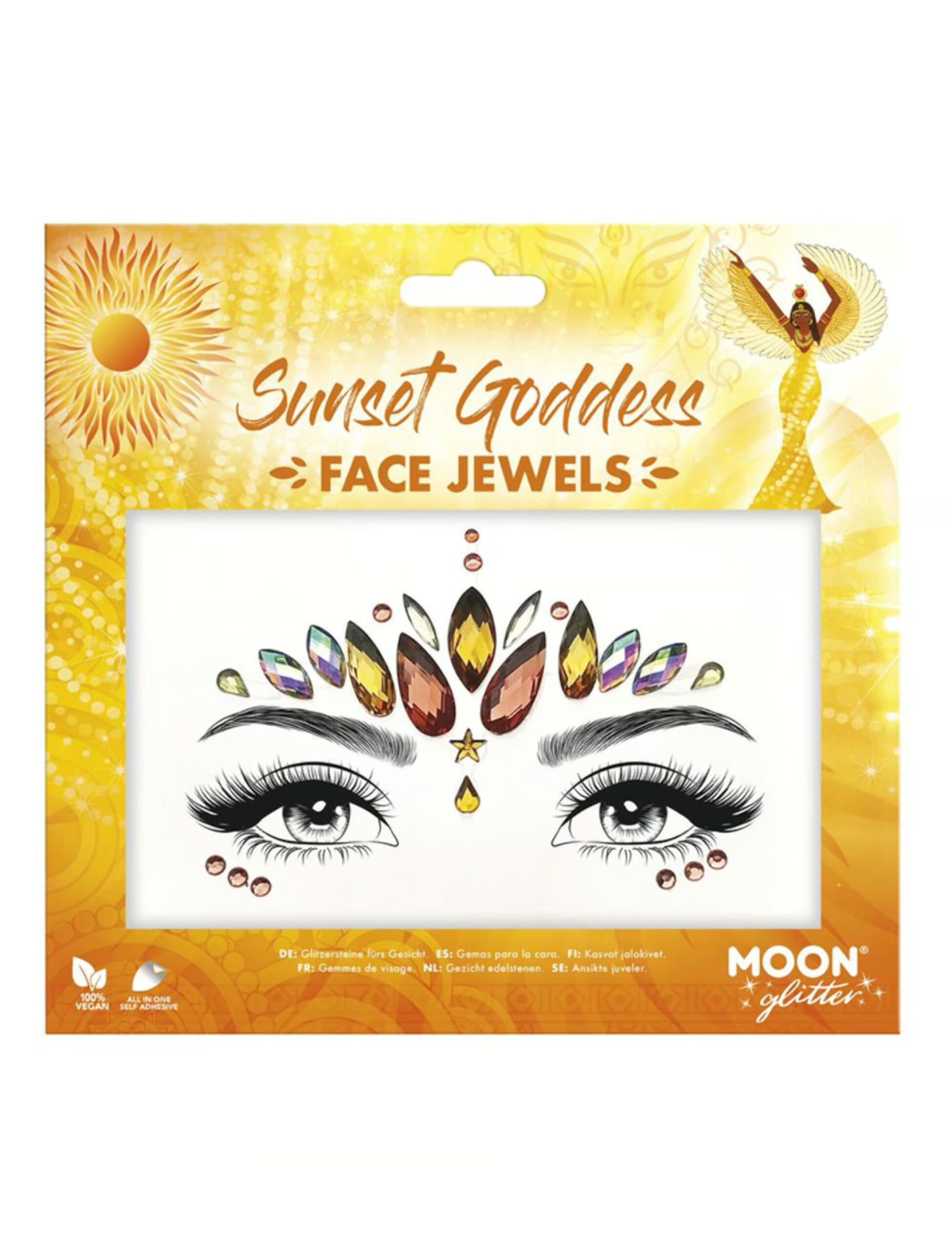 Für eine tolle Ausstrahlung und ein fantastisches Faschings Make-Up liegst Du mit unseren Gesichtsstrasssteinen Sonnenuntergang genau richtig. Der attraktive Gesichtsschmuck besteht aus golden, silbernen und rosa, schön facettierten Glitzerkristallen, die in ihrem Farbenspektrum der untergehenden Sonne gleichen und durch ihr Glitzern und Funkeln zum Blickfang werden. Du kannst die Teile mühelos auf der Stirn und unter den Augen anbringen und für besonders wirkungsvolle Ergebnisse mit buntem Glitter und Augen-Make-Up ergänzen.