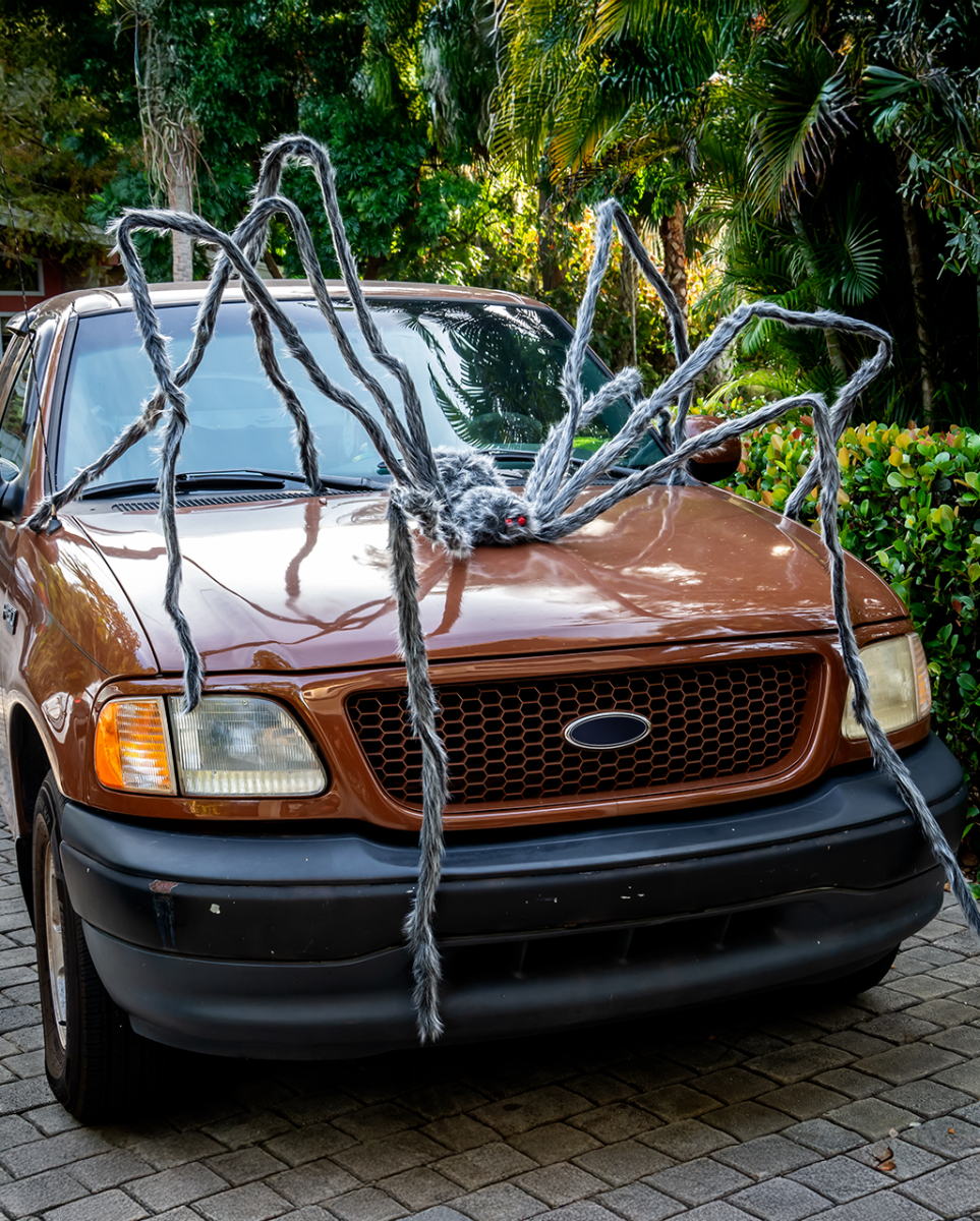 XXL Riesenspinne als Deko Grau-Schwarz Meliert 360cm Große Horror Spinne als XXL-Halloween Dekoration Heb deine Halloween Deko auf ein neues Level des Grauens. Unsere XXL Riesenspinne als Deko Grau-Schwarz Meliert ist ein echter Hingucker an Hausfassaden oder im Vorgarten. Sorge mit der haarigen Riesenspinne für einen Schocker. Die XXL Spinne als Horror Deko misst ausgebreitet bis zu 360 cm Durchmesser. Sie verfügt über 8 flexibel positionierbare Beine und über fiese rote Augen. Der Korpus ist behaart, was den Ekeleffekt erhöht. Lieferumfang: 1 x XXL Riesenspinne als Deko Grau-Schwarz Meliert 360cm Farbe: Grau, Schwarz, Rot Größe: ca. 360cm Material: Polyester, Polyfoam, Metall Gigantische XXL-Spinne Haariger Spinnenkörper mit acht XXL Beinen Horror Dekoration für die Hausfassade und das Treppenhaus Durchmesser der XXL-Spinne beträgt, nach dem in Position bringen bis zu ca. 360cm