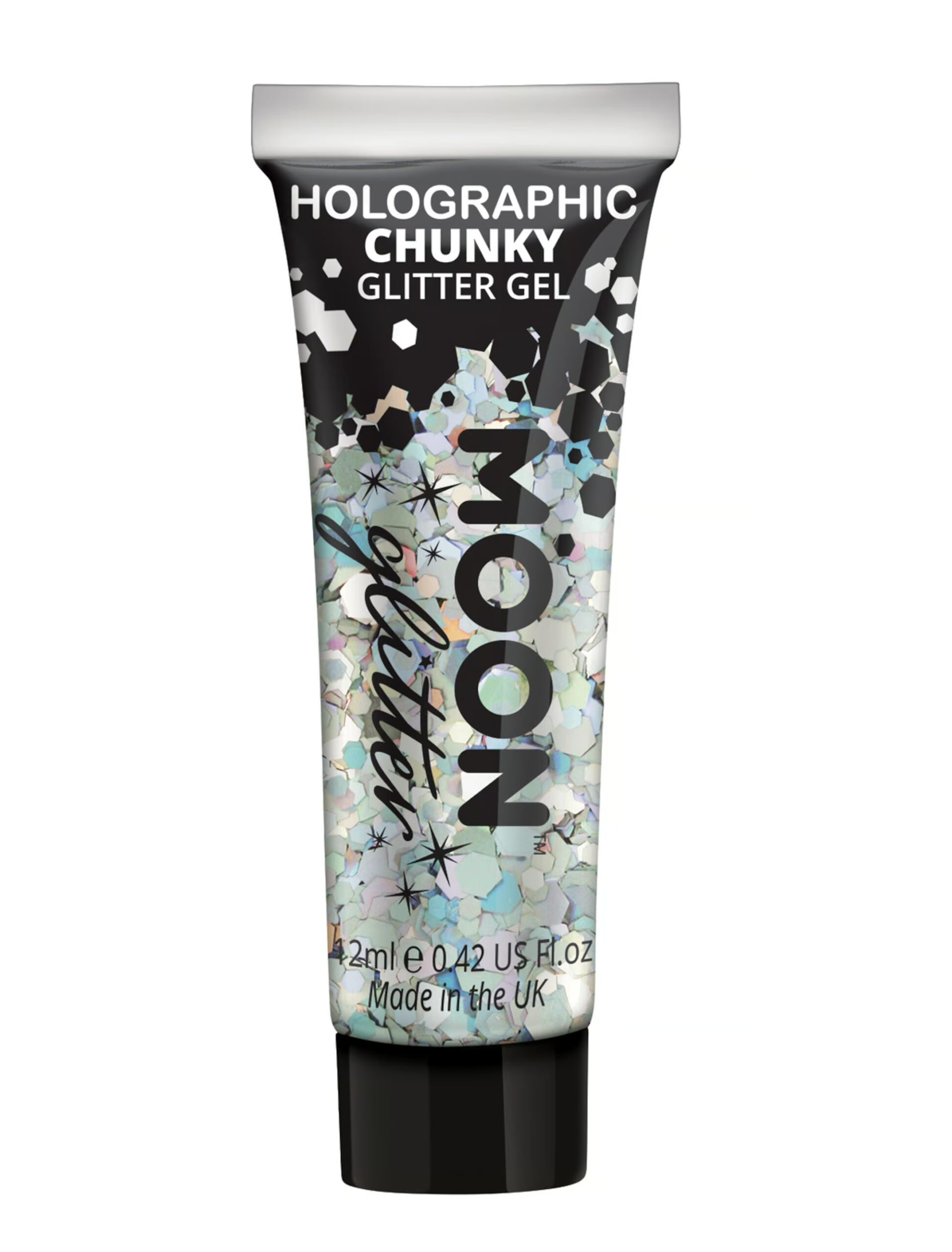 Mit diesem silbernen Chunky Holographic Glitzergel, das Dank seiner groben, holographischen Glitzerpartikel atemberaubende Licht- und Glanzeffekte auf die Haut zaubert, hast Du ein tolles Make-Up Zubehör, das Deinen Space- und Disco Outfits noch mehr Glanz und Glamour verleiht. Es ist leicht auf der Haut zu verteilen und bietet Dir die Möglichkeit Dein Make-Up noch strahlender und glitzernder zu gestalten. Durch seine irisierenden Licht- und Glanzeffekte ist es die optimale Ergänzung für Deine funkelnde Faschings- und Party Make-Ups.