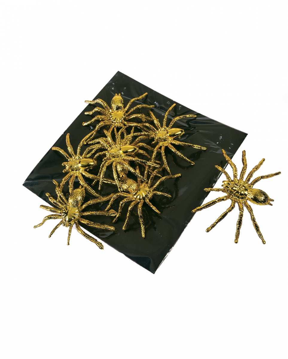 Goldene Deko Spinnen 8 Stück als Halloween Dekoration Auffällige Kunststoff Spinnen als eindrucksvolle Deko am Halloween Buffet Das Auge isst ja bekanntlich mit. Daher weiß du, wie wichtig eine stilvolle Dekoration ist. Als Gastgeber von altem Adel dekorierst du dein Buffet daher mit den Goldene Deko Spinnen 8 Stück. Die lieblichen Achtbeiner sorgen für ein besonderes Ambiente. Ihre kleinen Körper glänzen im Schein der Kerzen, wenn sich Frankenstein mit den Zombis um den letzten Rest vom Gehirnpudding streitet. Was für ein herrlicher Abend! Die Goldene Deko Spinnen 8 Stück kommen als Set und machen sich auch ideal als Deko im Regal, auf dem Esstisch oder in der Zimmerecke. Die Spinnen sind aus Kunststoff und begeistern durch ihre edel aussehende goldene Farbe. Als goldene Kunststoffspinnen dekorieren sie auch eine Gothic Party oder eine Horror Motto Party mit ihren lieblichen Spinnenkörpern. Lieferumfang: 1 x Goldene Deko Spinnen 8 Stück Farbe: Gold Inhalt: 8 Stück Material: Kunststoff Nicht für Kinder unter 3 Jahren geeignet. Kann Kleinteile enthalten, die verschluckt werden können – Erstickungsgefahr.