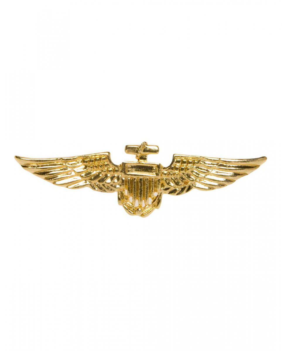 Goldenes Pilotenabzeichen als Kostümzubehör Besitze mit der Fliegerspange das goldenen Pilotenabzeichen eines Flugzeugführers Was ist ein Pilotenhemd oder ein Pilotenkostüm ohne die richtige Auszeichnung. Das goldglänzendes Pilotenabzeichen macht dich zum richtigen Frauenschwarm und sexy Uniformträger. Das Pilotenabzeichen als Kostümaccessoire zum Anstecken zeigt ein Wappen, das an den seitlichen Flanken der Fliegerspange zwei Adlerschwingen besitzt. Die Anstecknadel für dein Hemd oder Kostüm ist ca. 2 x 7 cm groß und hat auf der Rückseite zwei Pins zur Befestigung. Lieferumfang: 1x Goldglänzendes Piloten Abzeichen Farbe: Goldfarben Größe: 2 x 7 cm Material: 100% Metall