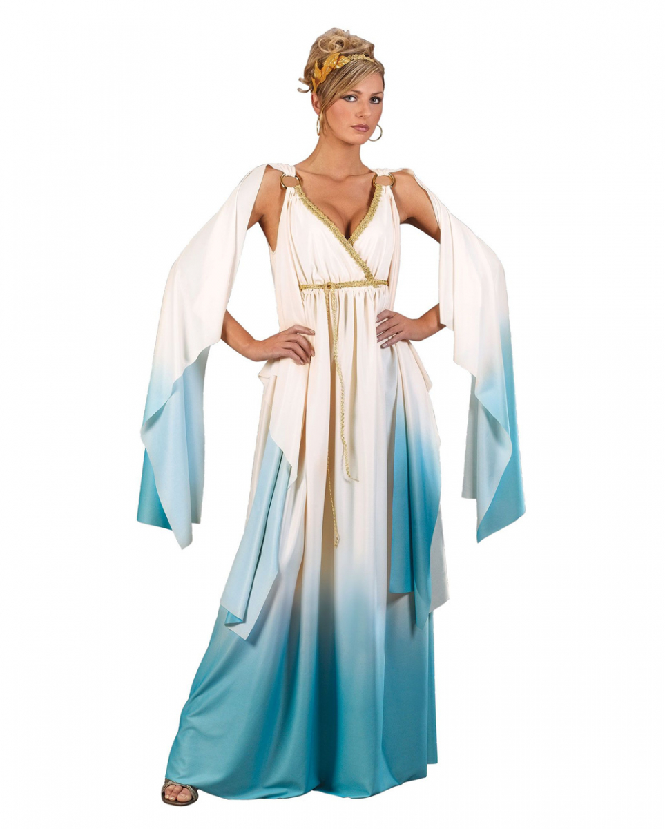 Göttinen Damenverkleidung Antikes Damenkostüm im griechischen Stil Das 2-teilige Kostümset für Damen besteht aus einem bezauberndem Kleid aus weichem Polyesterstoff, der in fliessenden Bewegungen den Körper umschmiegt. Die Farbnuancen reichen von cremefarben über goldfarbenem Saum am Bustier bis hin zum griechischen Hellblau. Das Trägerkleid ist ärmellos mit langen Schulterüberwürfen, die den göttlichen Style kräftig untersteichen und das softe Design des Göttin Kostüms unterstreicht. Produktinformation: Lieferumfang: 2-teiliges Kostüm Set aus langem Kleid und goldfarbenem Haarband Ärmelloses Keid mit langem, beidseitigem Schulterüberwurf Material: 100% Polyester Farbe: Creme-, Hellblau- Goldfarben Lieferumfang: 2-teiliges Kostüm Set aus langem Kleid und goldfarbenem Haarband Ärmelloses Keid mit langem, beidseitigem Schulterüberwurf Material: 100% Polyester Farbe: Creme-, Hellblau- Goldfarben Größe S/M 36-38 M/L 40-42 Länge ca. 135 cm ca. 138 cm Schulterbreite ca. 40 cm ca. 45 cm Länge Schulterüberwurf ca. 100 cm ca. 100 cm Brustweite (dehnbar) ca. 36-46 cm max. 52 cm