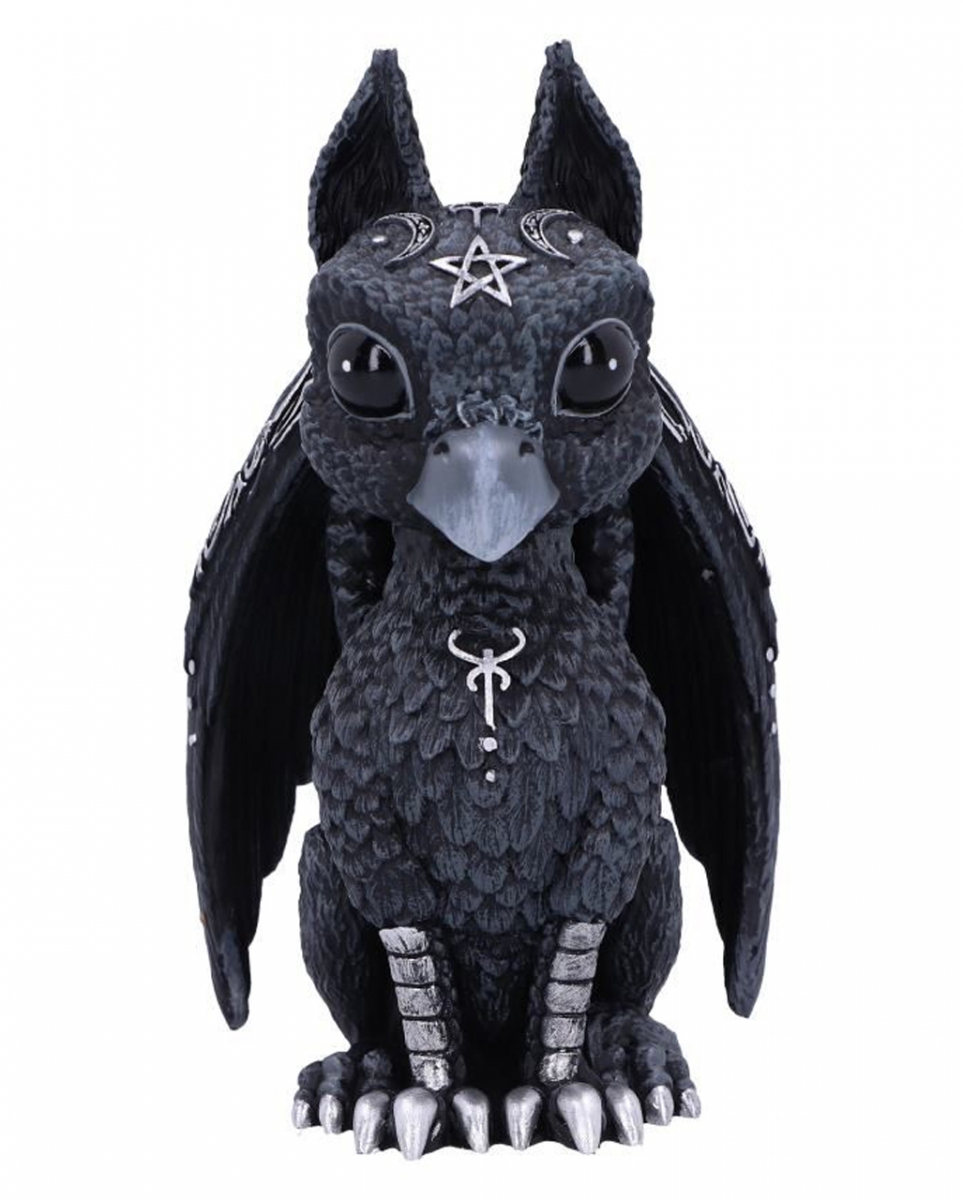 Griffael Okkulte Greifvogel Figur als Gothic Dekoration 11cm Verschenke den süßen Greifvogel mit tiefschwarzen Augen und mystischen Symbolen an einen Gothic Fan Die Griffael Okkulte Greifvogel Figur ist ein Gothic Wohnaccessoire, dessen dunklem Charme sich niemand entziehen kann. Griffael kommt direkt aus der Unterwelt und hat viel zu erzählen. Sei ganz still, vielleicht kannst du ihn verstehen. Die Griffael Okkulte Greifvogel Figur ist eine Gothic Deko, die aus hochwertigem Polyresin gegossen und handbemalt wurde. Mit der okkulten Symbolik und den kunstvollen silbernen Details blickt der schöne Greifvogel stolz auf alle, die an ihm vorbeigehen. Lieferumfang: 1 x Griffael Okkulte Greifvogel Figur 11cm Farbe: Schwarz, Grau, Silber Größe: ca. 11 cm Gewicht: 0,23 kg Material: Polyresin (Kunststein) Mit schwarzen Augen und großen Flügeln Mit silbernen Gothic Symbolen geziert Ideale Gothic Geschenkidee und Deko Der Artikel ist ein Deko Artikel und kein Spielzeug. Nicht für Kinder unter 3 Jahren geeignet. Kann Kleinteile enthalten, die verschluckt werden können – Erstickungsgefahr. Von Feuer und offenen Flammen fernhalten.
