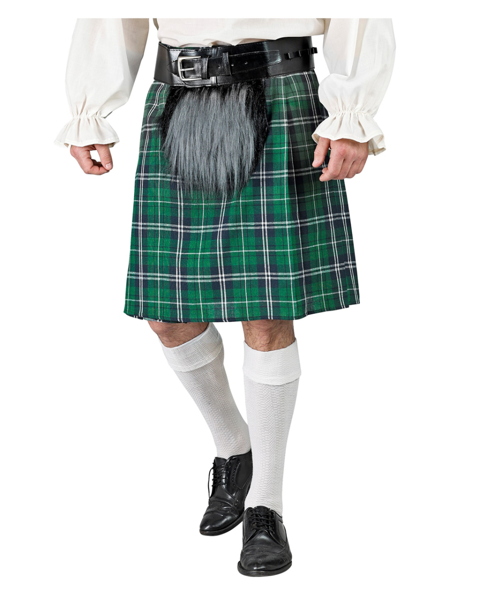 Grüner Schottenrock mit Karomuster und Tasche aus Kunstfell Größenverstellbarer Kilt als eindrucksvolles Kostümzubehör Highlander oder Riverdance Spektakel, stell dir vor, wie dein grüner Schottenrock mit Karomuster alle Blicke auf dich ziehst und das Flair des schottischen Hochlands direkt zu deiner Faschingsparty bringst. Dieses Outfit ist nicht echter Hingucker. Der grün karierte Schottenrock bietet dank seines praktischen Klettverschlusses eine flexible Passform für Größen von S bis XL. Die integrierte Tasche aus hochwertigem Kunstfell verfügt über einen Reißverschluss. Lieferumfang: 1 x Grüner Schottenrock mit Karomuster und Tasche aus Kunstfell Farbe: Grün, Blau, Weiß, Schwarz Größe: One Size, passt von S bis XL Material: 100% Polyester Grün karierter Schottenrock mit Kunstfelltasche Der Schottenrock ist durch Klettverschluss von S auf XL stufenlos größenverstellbar Die angenähte Felltasche aus Kunstfell besitzt einen Reißverschluss Gürtel, Koppel, Strümpfe Hemd und Accessoires nicht inkl.