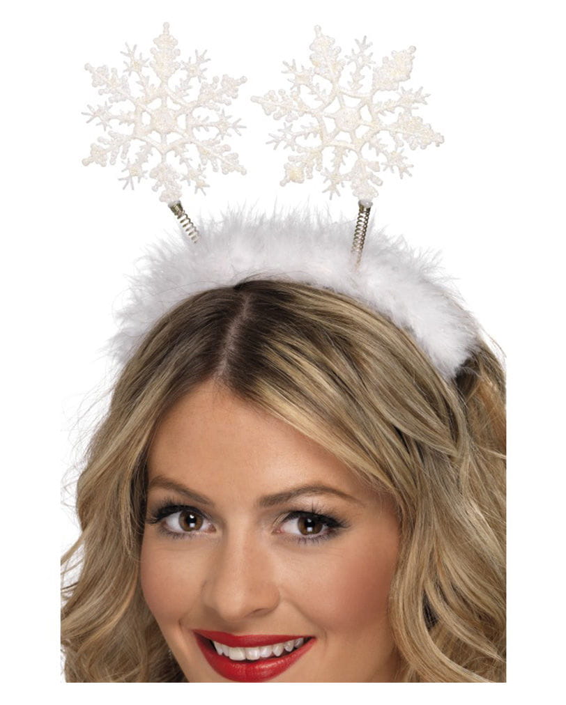 Haarschmuck mit Schneeflocken Glitzernde Schneeflocken auf weißem Haarreif Die wackelnden Schneeflocken mit viel Glitzer sind ein süßes Weihnachts- und Winter Acessoire. Du kannst den Haarreif wunderbar zu einer witzigen Weihnachtsfeier tragen oder zu deiner Verkleidung als Eiskönigin. Der Haarreif mit Schneeflocken besteht aus einem weißen Haarreif an dem weiße Marabufedern und Glitzerfäden angeklebt sind. An den Spiralfedern sind zwei große Schneeflocken mit viel Glitzer angebracht. Lieferumfang: 1 x Haarschmuck mit Schneeflocken Inhalt: 1 x Haarreif Farbe: weiß Größe: ca. 27 cm Material: Marabou Federn, Kunststoff Süßer Haarreif mit Schneeflocken Achtung: Der Artikel ist ein Kostümzubehör für Erwachsene und ist kein Spielzeug. Nicht für Kinder und Jugendliche unter 3 Jahren geeignet. Kann Kleinteile enthalten die verschluckt werden können – Erstickungsgefahr. Von Feuer und offenen Flammen fernhalten.