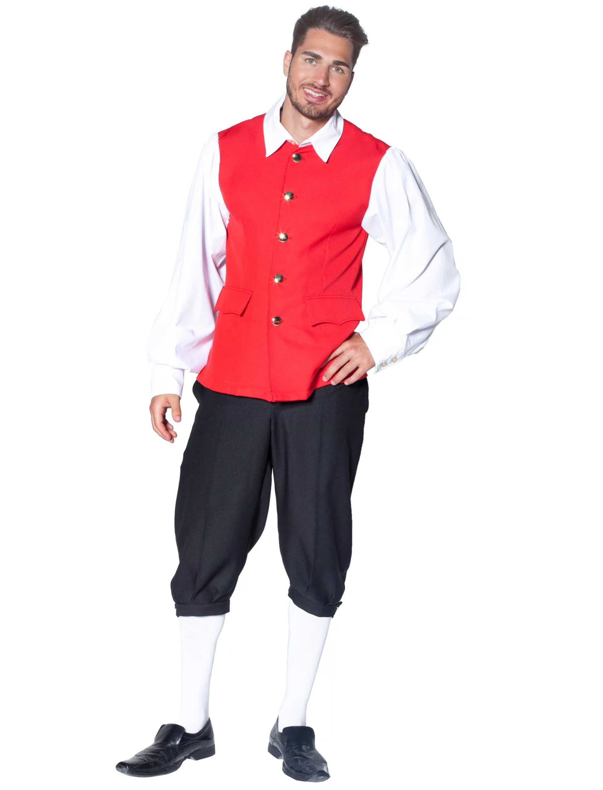In diesem Kostüm als urkölsches Wahrzeichen bist du auf deiner Karnevalsparty garantiert richtig gekleidet! Im Hänneschen Kostüm fehlt dir nur noch ein Bärbelchen und deine Karnevalsparty kann beginnen – du hast die Fäden in der Hand! Das traditionelle Kostüm besteht aus einer Hose, einem Hemd und einer passenden Weste. Die schwarze Kniebundhose kann an den Knien sowie am Hosenbund mithilfe eins Knopfes verschlossen werden. Sie ist locker geschnitten und auf beiden Seiten mit praktischen Taschen versehen. Das Hemd ist schlicht und weiß gehalten und wird in der Front mit einer Knopfleiste verschlossen. Die typische Hänneschen Weste in rot verleiht dir auf deiner kölschen Party 100 prozentigen Widererkennungswert. In der Front ist sie mit einer goldenen Knopfleiste versehen und auf beiden Seiten befinden sich Taschenansätze. Kombiniert mit ein paar Kniestrümpfen und passenden Zubehörteilen ist dein Hänneschen-Look komplett! Der Vorhang ist eröffnet und deine Karnevalsparty kann beginnen: