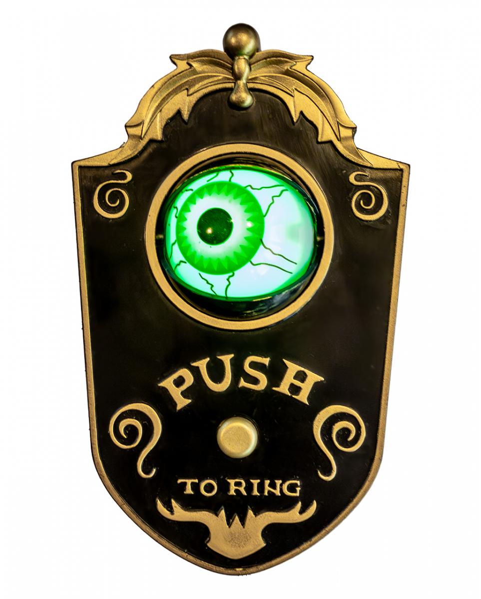 Halloween Türklingel mit leuchtendem Auge und Sound Erschrecke deine Gäste mit unserer gruseligen Halloween Türglocke schon im Eingangsbereich Du willst deine Halloween-Gäste mit einem Gruselerlebnis begrüßen? Dann haben wir mit der Halloween Türklingel mit leuchtendem Auge und Sound genau das richtige für dich! Wir sind uns sicher, dass die Türglocke jedem noch lange in Erinnerung bleiben wird. Die Halloween Türklingel mit leuchtendem Auge und Sound hat einen goldenen Knopf. Nach Betätigen ertönt ein Klingeln und unter fiesem Knarzen taucht ein leuchtendes Auge auf – begleitet von warnenden Willkommensgrüßen wie „Enter At Your Own Risk“. Lieferumfang: 1 x Halloween Türklingel mit leuchtendem Auge und Sound Inhalt: 1 x Türglocke mit Auge Farbe: Schwarz, Brau, Gold, Grün Größe: 18 x 11 x 5 cm Batterien: Es werden 3-AAA Batterien benötigt, diese sind inkl. Material: Kunststoff Halloween Türglocke mit Licht, Sound und Bewegung für den Eingangsbereich Nach dem Klingeln öffnet sich unter Knarzen das leuchtende Auge Der beleuchtete Augapfel bewegt sich hin und her Eine Gruselstimme heißt deine Gäste willkommen Die benötigten 3-AAA Batterien sind im Lieferumfang enthalten Der Artikel ist eine Halloween-Dekoration und kein Spielzeug. Nicht für Kinder unter 3 Jahren geeignet. Kann Kleinteile enthalten, die verschluckt werden können – Erstickungsgefahr. Von Feuer und offenen Flammen fernhalten.