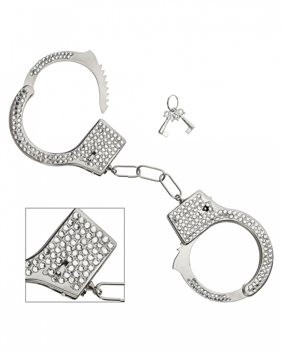 Handschellen mit Strass-Steinchen Glitzernde Handschellen für den JGA und dein Faschingskostüme Handschellen dürfen bei keinem Polizeikostüm fehlen. Mit unseren Handeschellen mit Strass-Steinchen hast du das perfekte Kostümzubehör für Fasching und den JGA. Diese ausgefallenen Handschellen sind mit zahlreichen, glitzernden Strasssteinen verziert und versprechen ein ganz besonderes Sex-Erlebnis.   Lieferumfang: 1 Paar Handschellen mit Strass-Steinchen und zwei Schlüsseln Farbe: Silber Material: Kunststoff und Strass