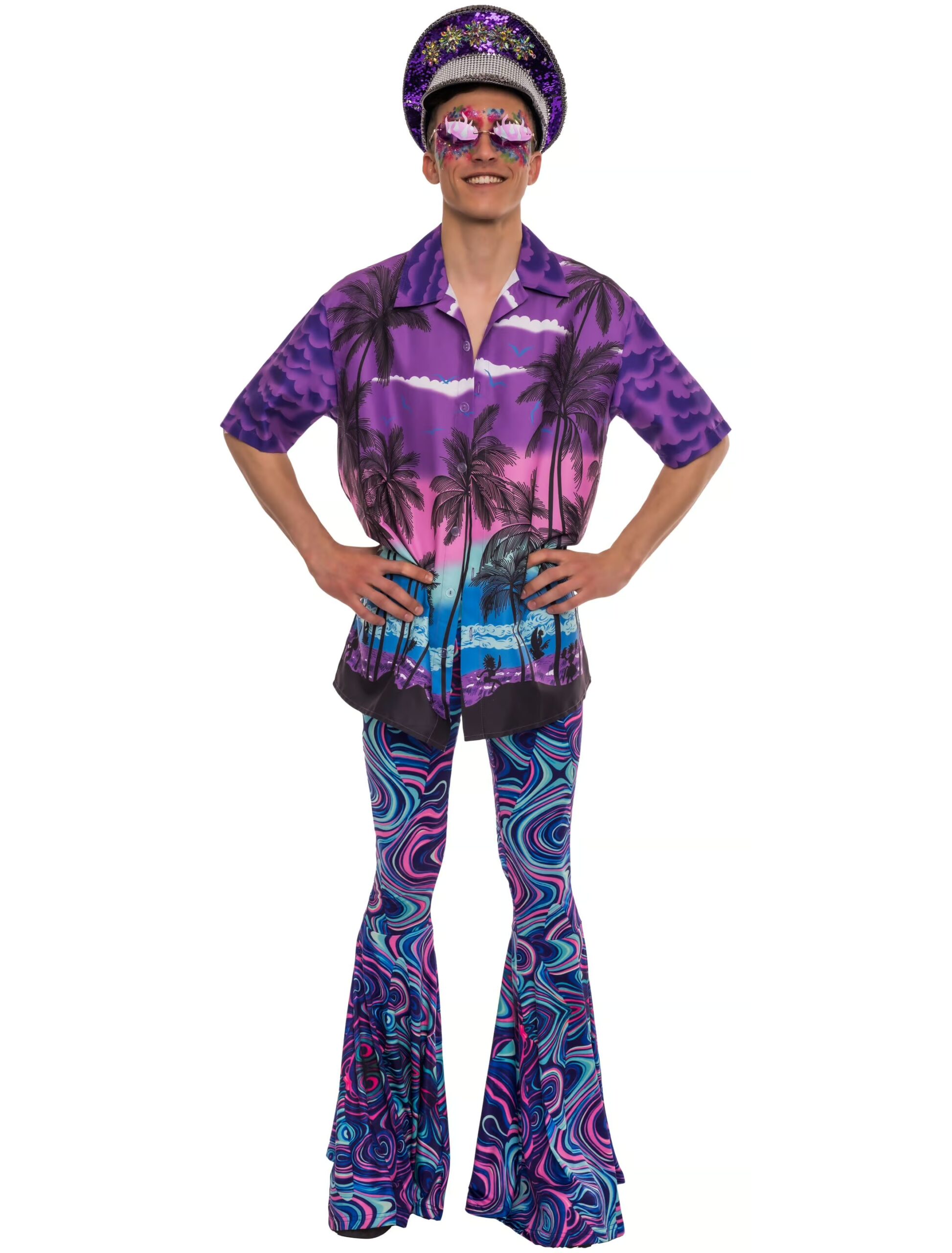 Hawaiihemd Herren lila L, ideal für Karneval & Fasching