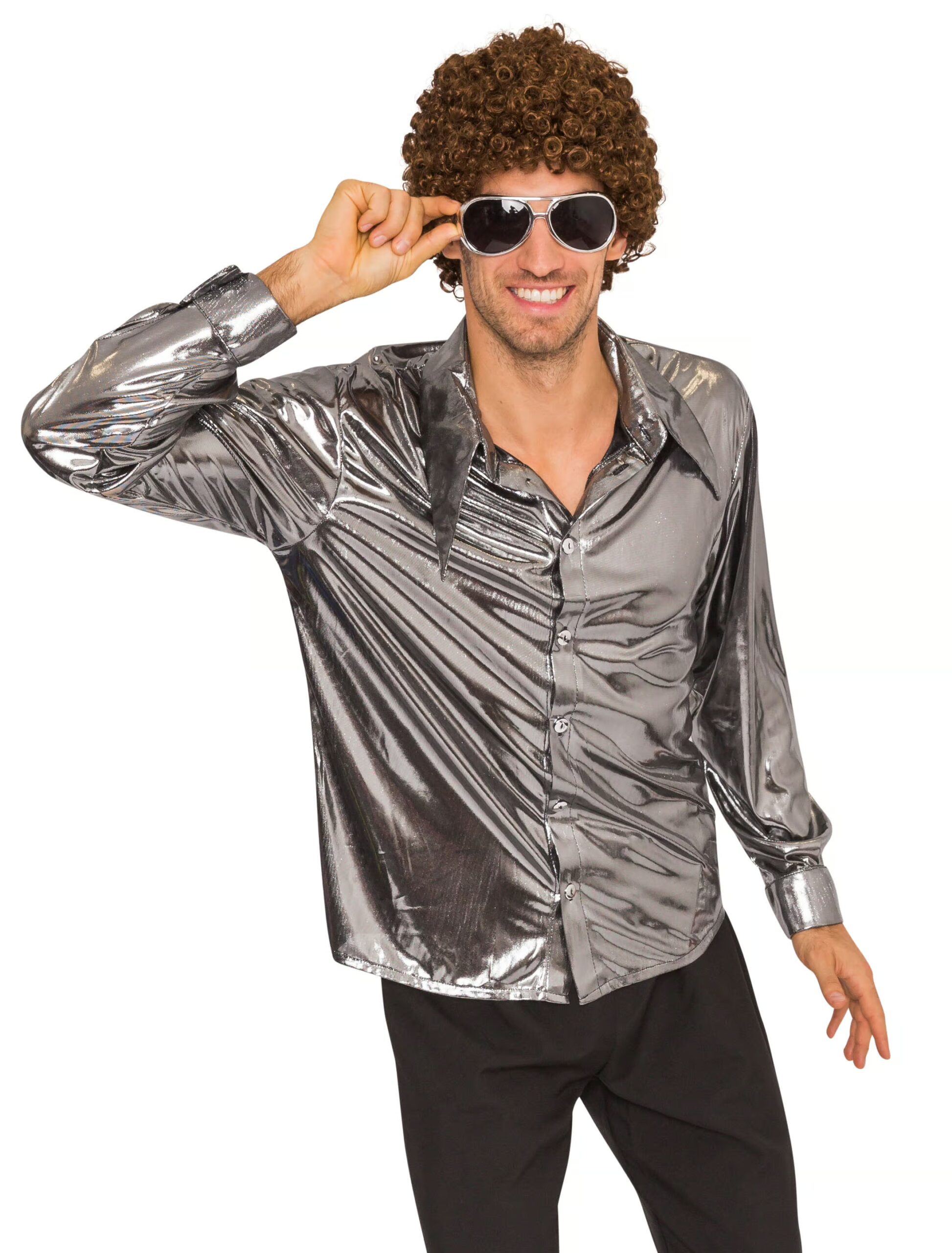 It’s partytime! Dieses aufregende Hemd möchtest Du am liebsten nie wieder ausziehen, denn das würde auch bedeuten, dass die Party zu Ende ist. Das silber-metallicfarbene Kleidungsstück glänzt auf jeder Party mit den Discokugeln und Lichtern um die Wette. Der große Kragen und der tiefe Ausschnitt machen das Herren Hemd zu einem aufregenden Hingucker.