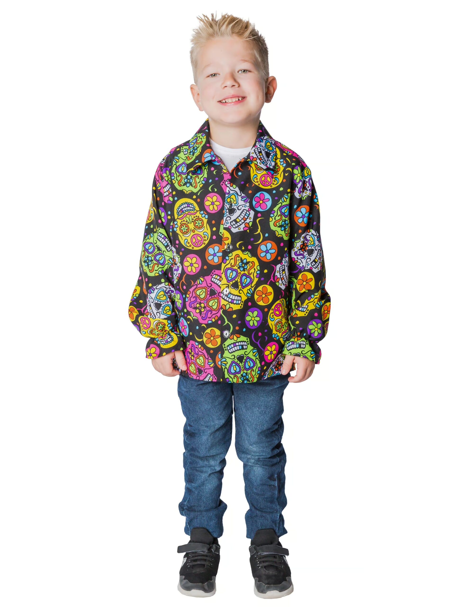 Hemd mexikanische Totenköpfe 128, ideal für Karneval & Fasching