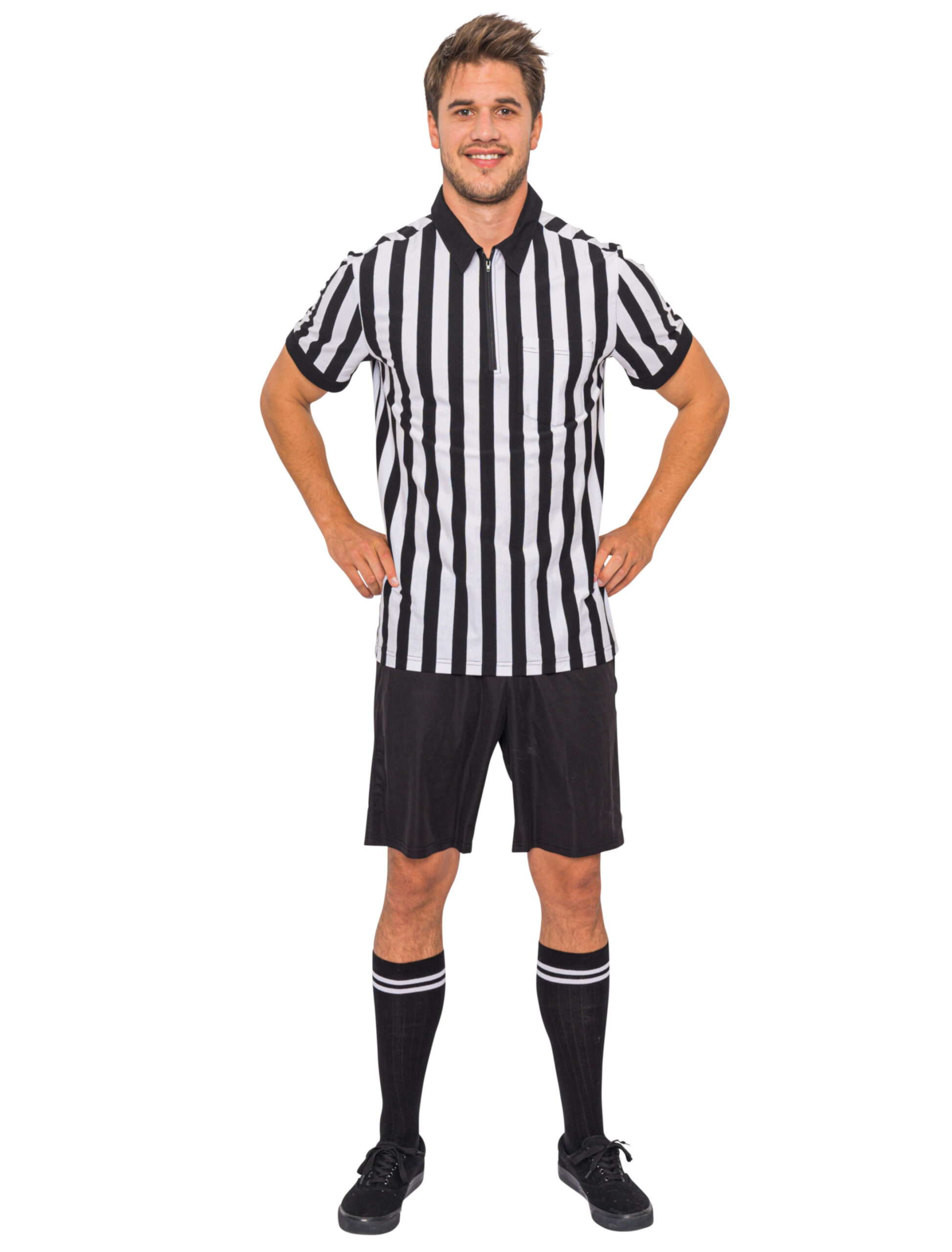 Mit diesem echt aussehenden Hemd gibst Du an Karneval den perfekten Schiedsrichter ab und bist auch bei vielen Heimspielen gut angezogen. Das pflegeleichte Hemd im schwarz-weißen Streifendesign hat einen Reißverschluss in der Front und eine Brusttasche, in der Du Karten zur Verwarnung unterbringen kannst. Durch die kurzen Ärmel wirkt es echt und sportlich. Mit solch überzeugender Autorität ausgestattet, wirst Du schnell zum beliebten Streitschlichter und kannst bei Bedarf ein Machtwort auf der Karnevalsparty sprechen.