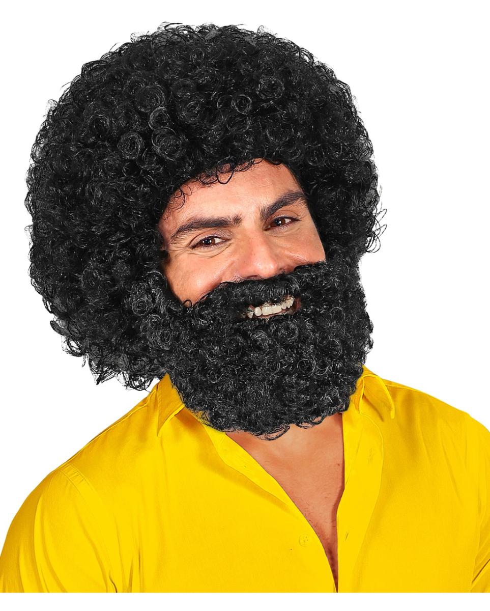 Schwarze Herrenperücke Jerome mit gekräuseltem Vollbart Gekräuselte, schwarze Männerperücke als vielseitiges Kostümzubehör für Karneval und Fasching Mit unserer Faschingsperücke für Herren verwandelst du dich in einen ganz neuen Charakter. Trage die Herrenperücke mit Vollbart als Accessoire für eine 70er Jahre Mottoparty, und sorge mit deiner gekräuselten Lockenmähne für einen echten Hingucker! Unsere Lockenperücke Jerome mit Bart ist ein geniales Zubehör für verschiedenste Charakter Kostüme. Nicht nur für den Karneval macht sich die realistisch aussehende Lockenperücke mit Bart ideal – auch für Theater- und Filmproduktionen ist die schwarze Herrenperücke ein tolles Kostümzubehör. Du bekommst das Kostümaccessoire in der Herrengröße One Size. Haare und Bart haben die gleiche Farbe und sind voluminös gekräuselt – eine witzige Kostümidee, die dich ganz groß herausbringt! Lieferumfang: 1 x Schwarze Herrenperücke Jerome mit gekräuseltem Vollbart Inhalt: 1 x Perücke mit Vollbart Farbe: Schwarz Größe: One Size Material: Kunsthaar Schwarze Lockenperücke mit gekräuseltem Vollbart Verkleidungszubehör für Fasching, Karneval und Theater Realistisch aussehendes Kunsthaar