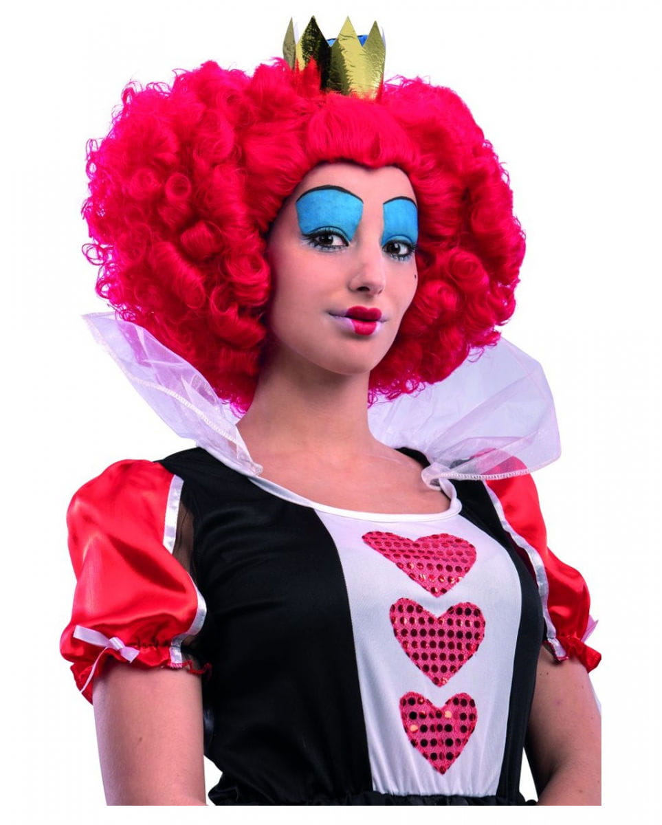 Königin der Herzen Perücke mit Krone rot/Gold für Erwachsene lockig Lockenperücke mit Krone für Königinnen Kostüm Als gereizte Königin der Herzen machst du dem Hofstaat das Leben nicht gerade leicht. Das Beste ist für dich gerade gut genug und darum hast du den Ruf einer hysterischen Drama Queen. Dennoch bist du die einzige, die alles unter Kontrolle hat, denn ohne dich wäre dein Königreich einfach nur öde. Dein Lieblingsspiel ist Poker, und um zu gewinnen bluffst du was das Zeug hält. Die Herz Dame bringt dich immer zum Sieg. Die Königin der Herzen Perücke ist ein auffälliges Kostümzubehör für einen royalen Auftritt. Die rote Erwachsenenperücke in One Size ist eine Lockenperücke und erinnert ein wenig an die Frisur der bösen Herzkönigin aus dem Wunderland. Auf der Perücke sitzt ein goldenes Krönchen, welches klar macht, wer das Zepter in der Hand hat. Die Königin der Herzen Perücke mit Krone kann beliebig kombiniert werden. Lieferumfang: 1 x Königin der Herzen Perücke Farbe: Rot/Gold Größe: One Size, Erwachsengröße Material: Polyamid/Polyester Der Artikel ist ein Kostümzubehör für Erwachsene und kein Spielzeug. Von Feuer und offenen Flammen fernhalten.
