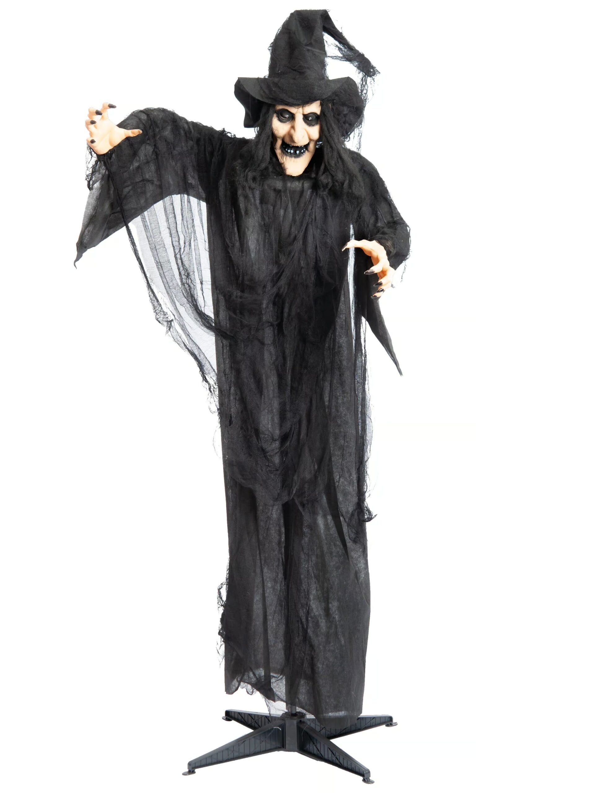 Wenn Du eine coole Halloween Deko bzw. eine Party Deko suchst, dann bist Du mit dieser stehenden Hexe genau richtig. Diese Hexe besitzt lilafarbene LED-Leuchten in ihrem Kleid sowie auch rot leuchtende Augen, die dem Betrachter sicher begeistern werden. Die Arme sind beweglich und können bei Bedarf in die passende Position gerückt werden. So ist die Hexe auf jeder Halloween Party ein guter Begleiter. Diese Halloween Deko kannst Du zum Beispiel in den Garten oder Vorgarten stellen.