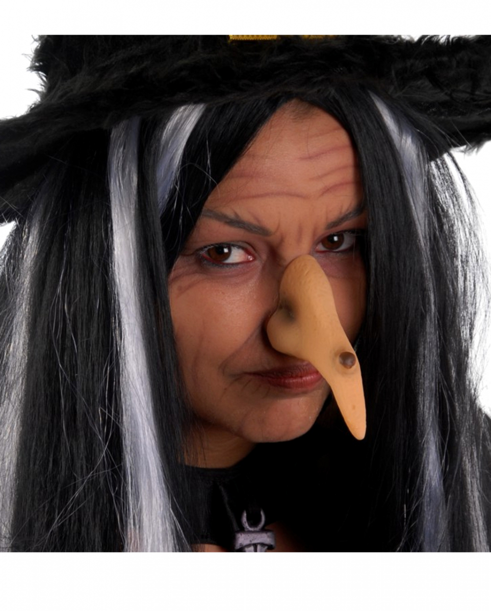 Gebogene Hexennase mit Warze und Gummiband Die krumme Nase ist ein Muss für jede Hexe zu Halloween und Fasching Die klassische Hexe stellt man sich mit Hexenbuckel, einer furchterregenden Visage und einer krummen Nase vor. Deshalb Nase aufgesetzt und rein ins Partygetümmel! Die Gebogene Hexennase mit Warze und Gummiband ist aus Kunststoff und hat an der Unterseite der Nase zwei Löcher durch die beim Tragen der Nase geatmet werden kann. Befestigt wird die Nase mittels eines Gummibands am Hinterkopf. Lieferumfang: 1 x Gebogene Hexennase mit Warze und Gummiband Farbe: hautfarben Größe: One Size, Länge: ca. 10 cm Material: Kunststoff Ohne krumme Nase ist man auch keine richtige Hexe! Achtung: Der Artikel ist ein Kostümzubehör für Erwachsene und kein Spielzeug. Nicht für Kinder unter 3 Jahren geeignet. Kann Kleinteile enthalten, die verschluckt werden können – Erstickungsgefahr. Von Feuer und offenen Flammen fernhalten.