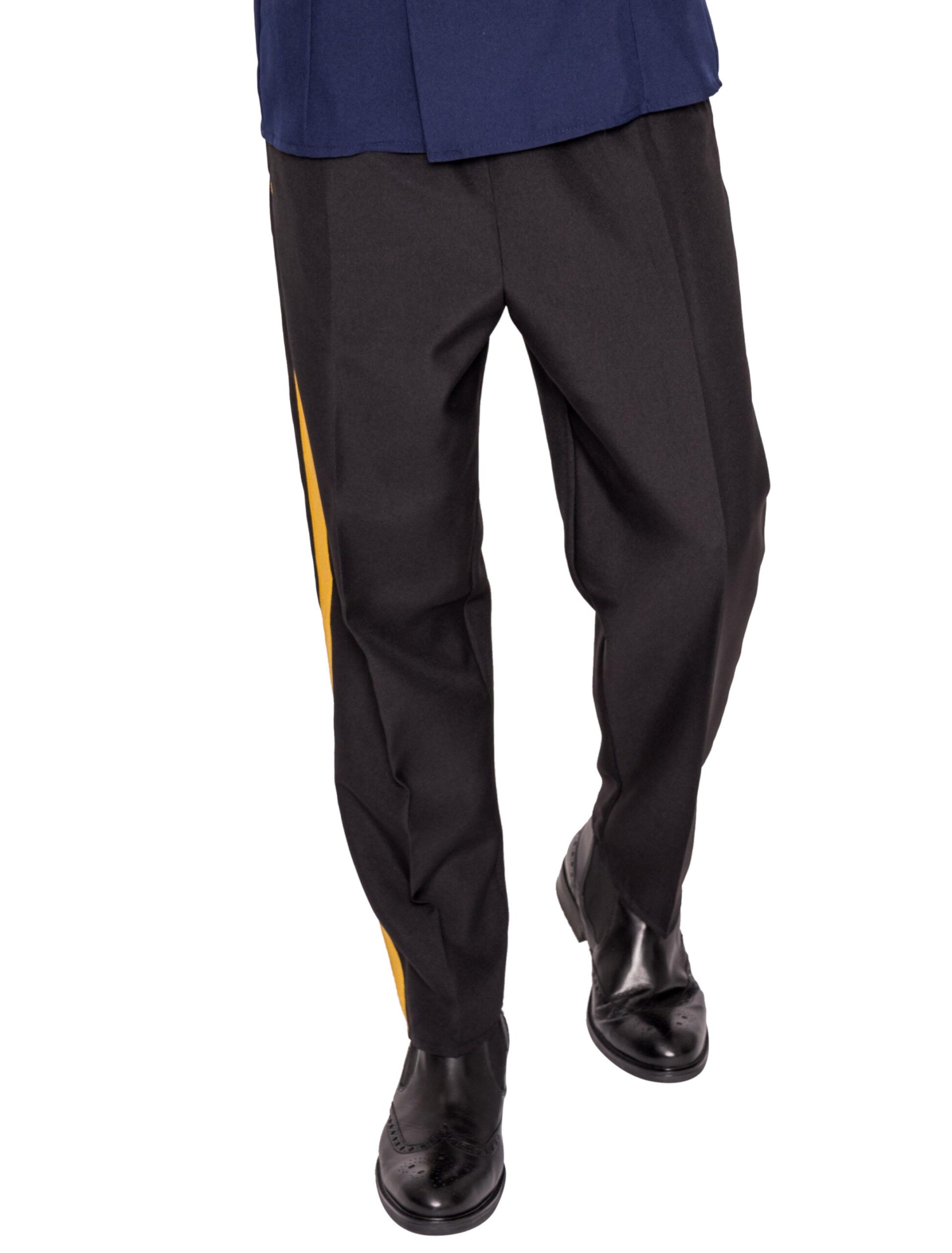 Dir fehlt noch die perfekte Hose zu Deinem Kostüm? Sie soll schlicht und trotzdem ein Hingucker sein? Dann ist diese schwarze Hose aus Polyester mit goldenem Streifen an den Seiten der Hosenbeine ganz sicher etwas für Dich. Sie lässt sich besonders gut zu Piloten- oder Matrosen-Kostümen kombinieren, aber mit etwas Mut und Kreativität kannst Du sie sicherlich auch in jede andere Verkleidung integrieren. Deiner Kreativität sind hier keine Grenzen gesetzt.