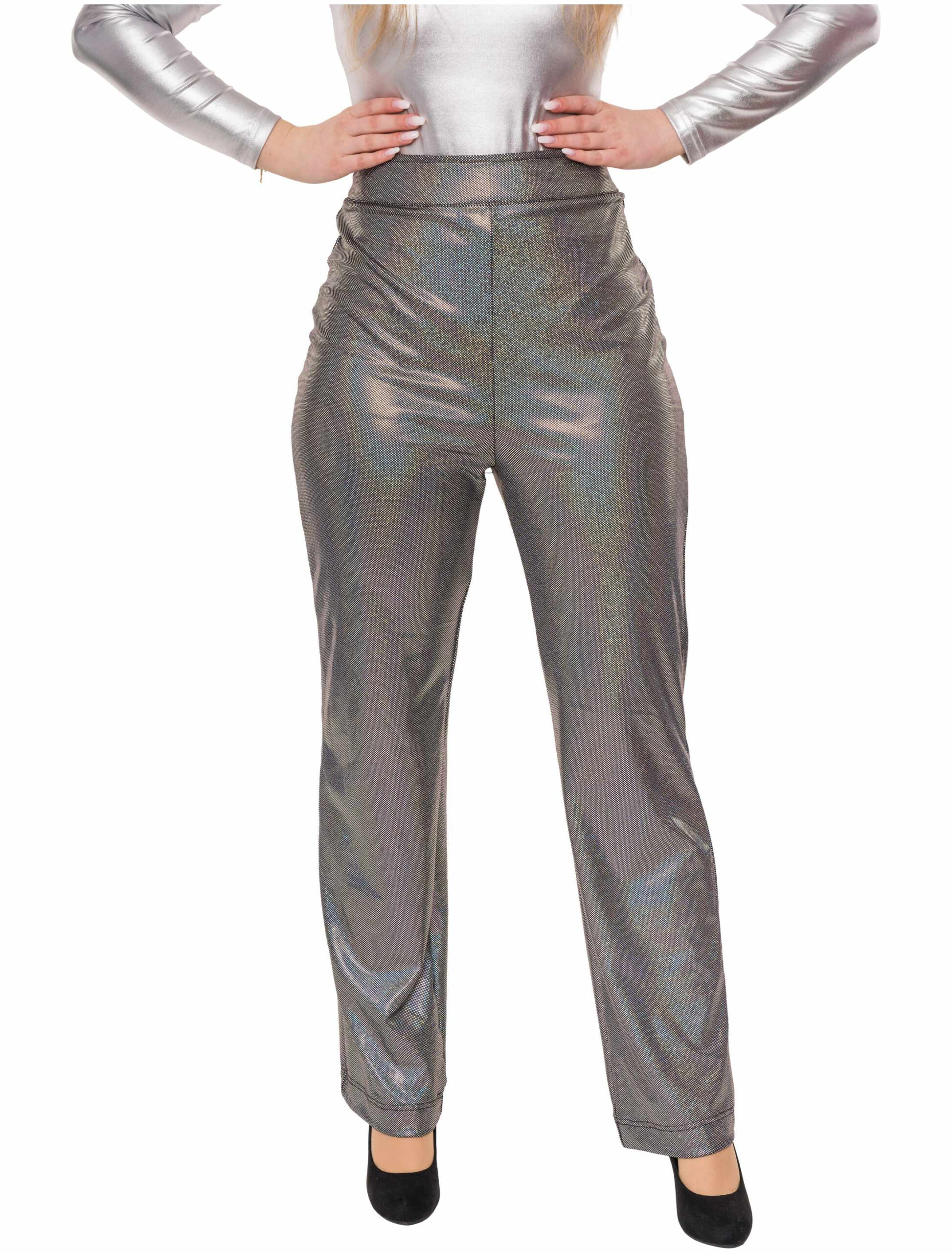 Hose High-Waisted Glitter Damen silber 4XL/5XL, ideal für Karneval & Fasching