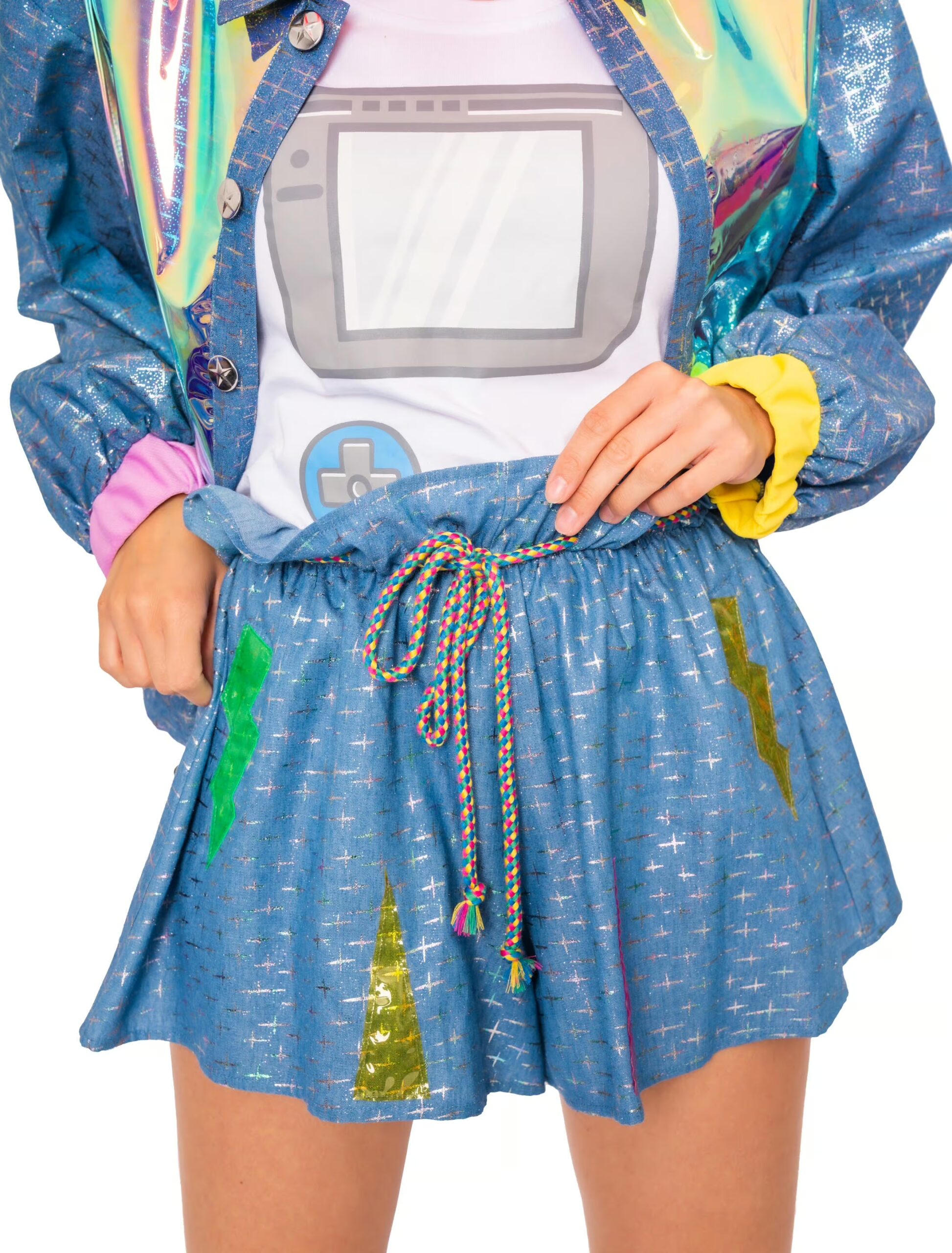 Dieser auffällig glänzende Hosenrock mit Kordel und Gummizug im Bund garantiert einen hohen Tragekomfort und macht jede Bewegung mit. Das Baumwoll-Polyester-Gemisch ist ferner pflegeleicht und bewährt sich in jeder Situation. In Kombination mit der farblich, in unserem Shop gleichfalls erhältlichen Jacke bist Du der Hingucker in jeder Disco. Ideal ist dieser Look auch für 80er-Motto-Parties. Mit diesem luftig-leichten Rock beweist Du, dass nicht nur die Beine von Marlene legendär sind.