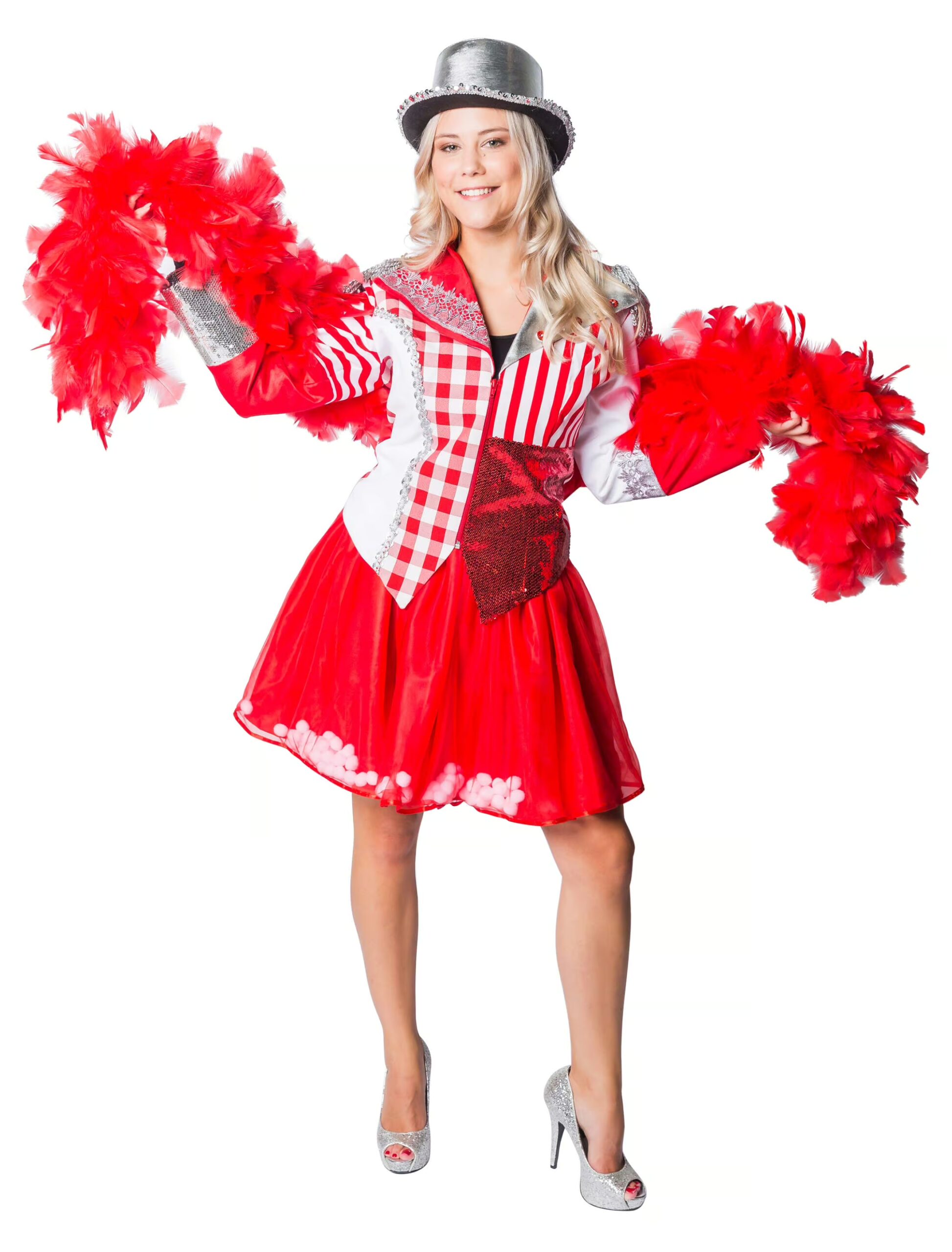 Die rot-weiße Jacke für Damen verwandelt Dich in ein attraktives Tanzmariechen, das den Karneval unsicher macht. Zusammen mit einer Federboa und einem roten Rock kannst Du die Jacke wunderbar auf jeder Party tragen. Auch ein Zylinder passt zu dem Kostüm und sorgt bei dem närrischen Treiben für den letzten Schliff. In vielen Größen kannst Du das Oberteil in der Deluxe Variante bei uns im Shop bestellen. Hergestellt aus unterschiedlichen Mustern sorgt die Polyester Jacke für pure Heiterkeit bei jedem Karnevalszug und wird Dich mit silbernen Schulterstücken perfekt in Szene setzen. Exklusiv Artikel. Kölle. Köln.