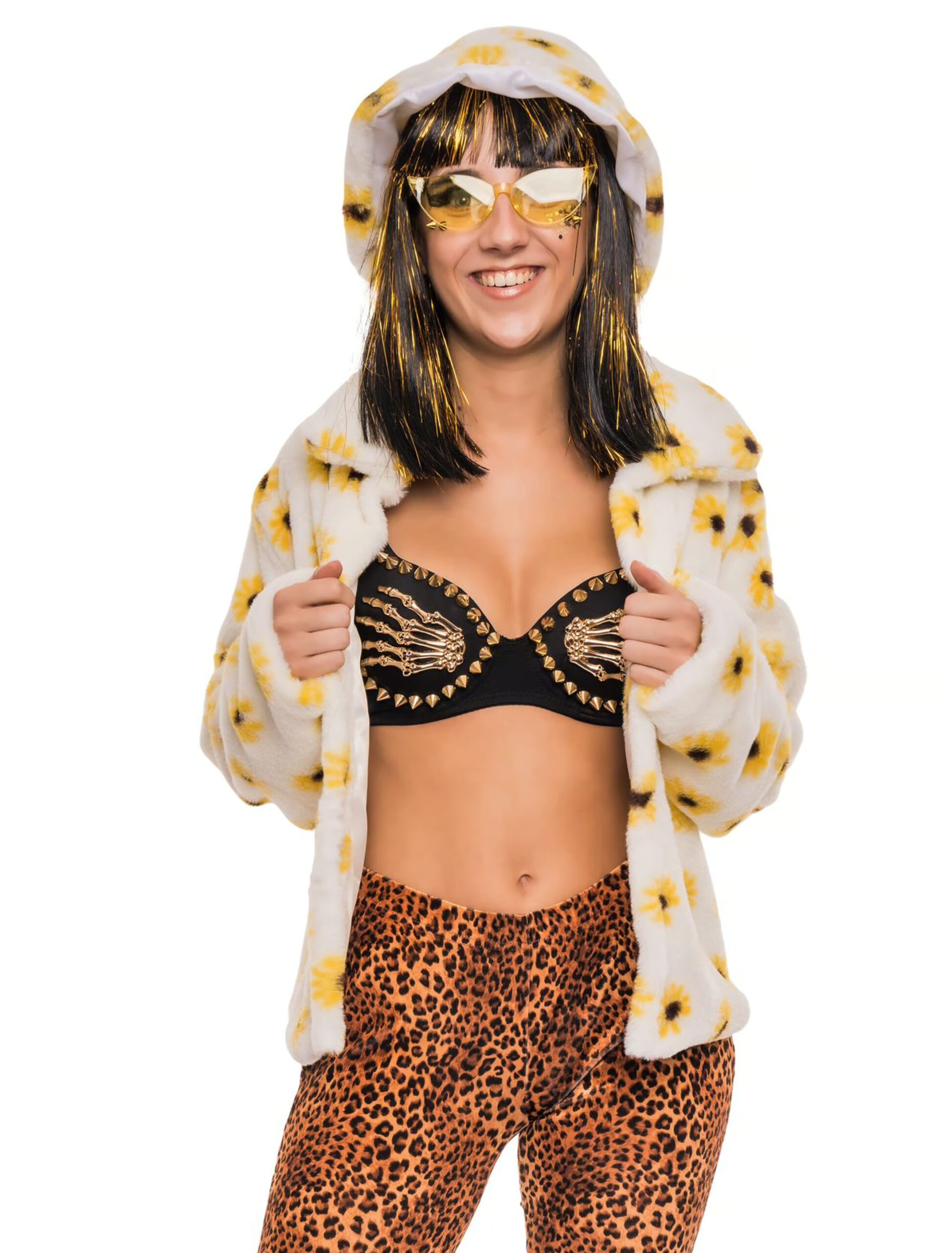 Jacke Faux-Fur Damen gelb/weiß 2XL/3XL, ideal für Karneval & Fasching