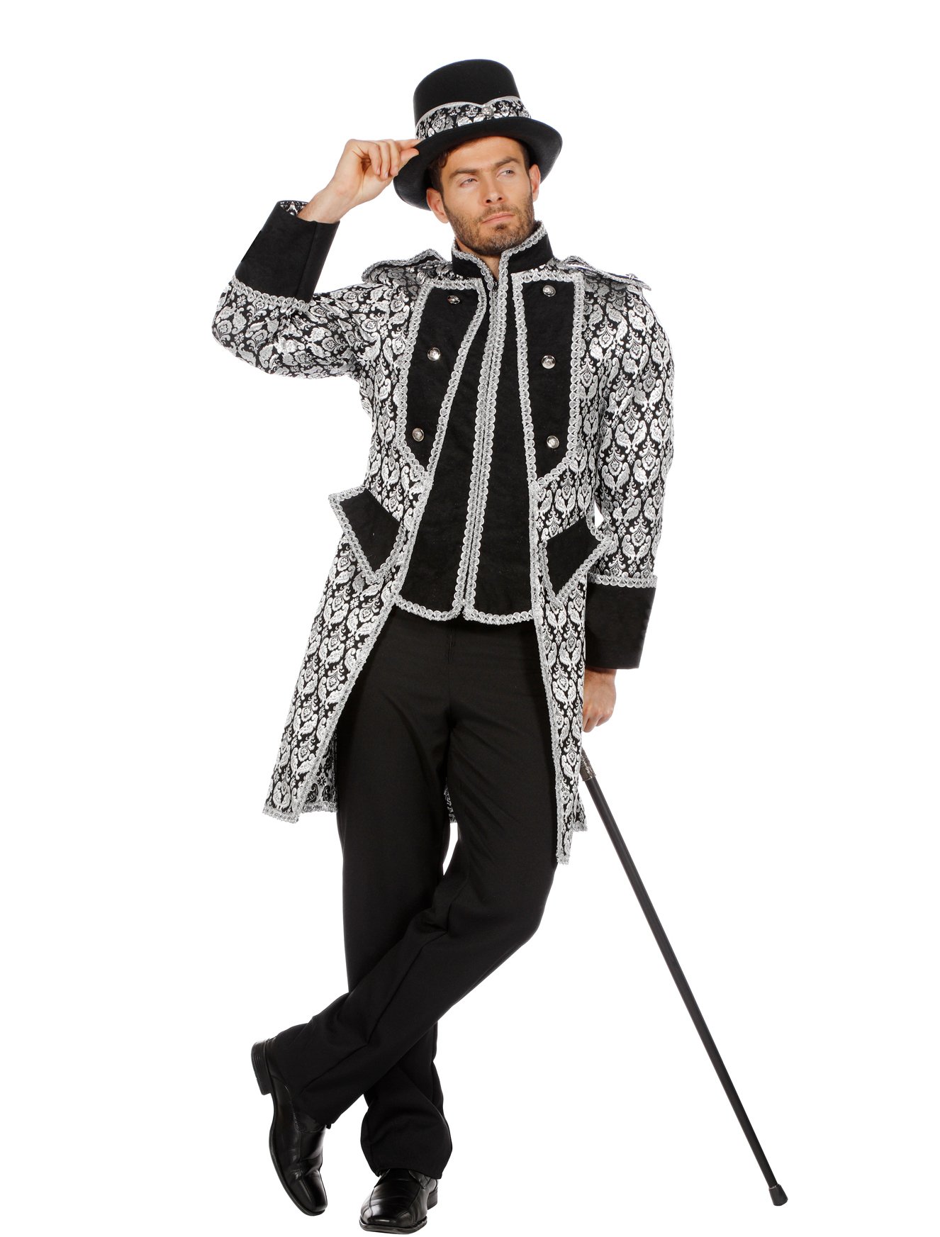 Jacke Jaquard Herren schwarz/silber 48, ideal für Karneval & Fasching