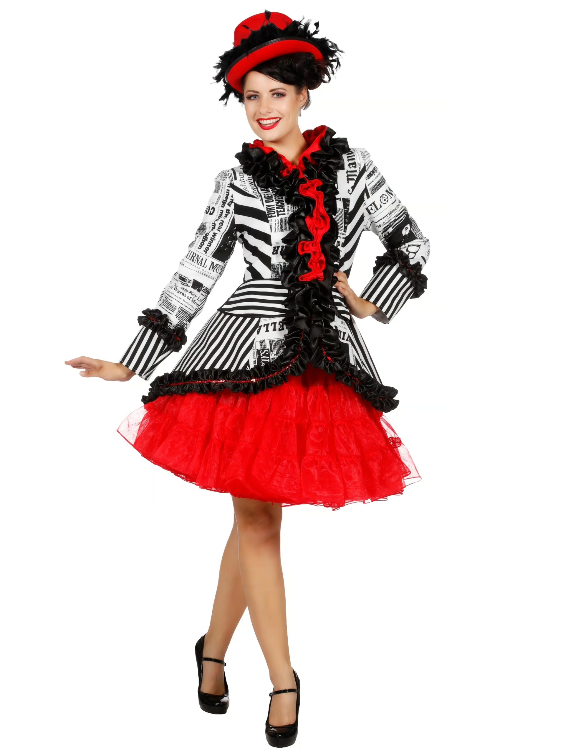 Wenn Du gerne die aktuellsten Nachrichten verbreitest, dann hole Dir noch heute unsere schicke Journal Jacke für Damen. Das bedruckte Oberteil für die Newspaper Lady von heute kann in vielen Größen bei uns im Shop bestellt werden. An Karneval kannst Du den Besuchern mitteilen, wie das Wetter wird oder wie die Aktien stehen. Dazu kannst Du einen Hut und einen Rock tragen, die das Magazin Outfit für Frauen prima ergänzen. Zeitung. Zeitungsausschnitte.