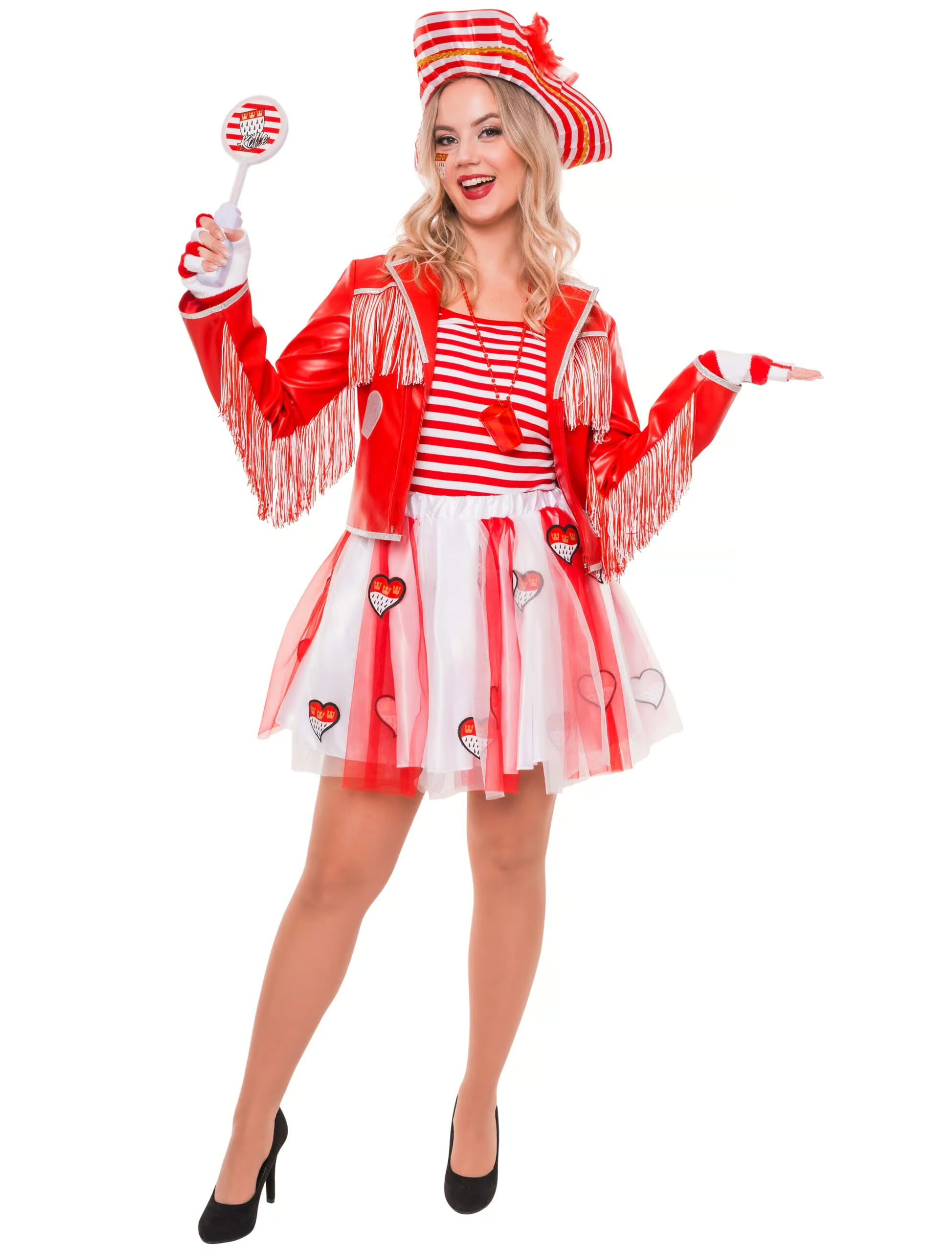 Mit unserer Jacke mit Fransen bringst du Bewegung, Glanz und eine ordentliche Portion Show in jedes Outfit! Diese Jacke ist ein echter Blickfang und verbindet extravagantes Design mit funkelnden Details. Vorne lässt sich die Jacke bequem mit einem Reißverschluss schließen, wodurch sie sich leicht über jedes Shirt oder Kostüm tragen lässt. Ein besonderes Highlight sind die langen Fransen, die vorne, hinten und an den Ärmeln angebracht sind und bei jeder Bewegung spektakulär mitschwingen. Auf der Vorder- und Rückseite der Jacke setzen glitzernde Patches in Herz- und Sternform zusätzliche Akzente. Ob beim Karneval, auf der Bühne oder bei Partys – mit dieser Jacke bist du bestens ausgestattet. Ein Muss für alle, die gerne auffallen und ihren Look mit einer Extraportion Glamour aufpeppen wollen!