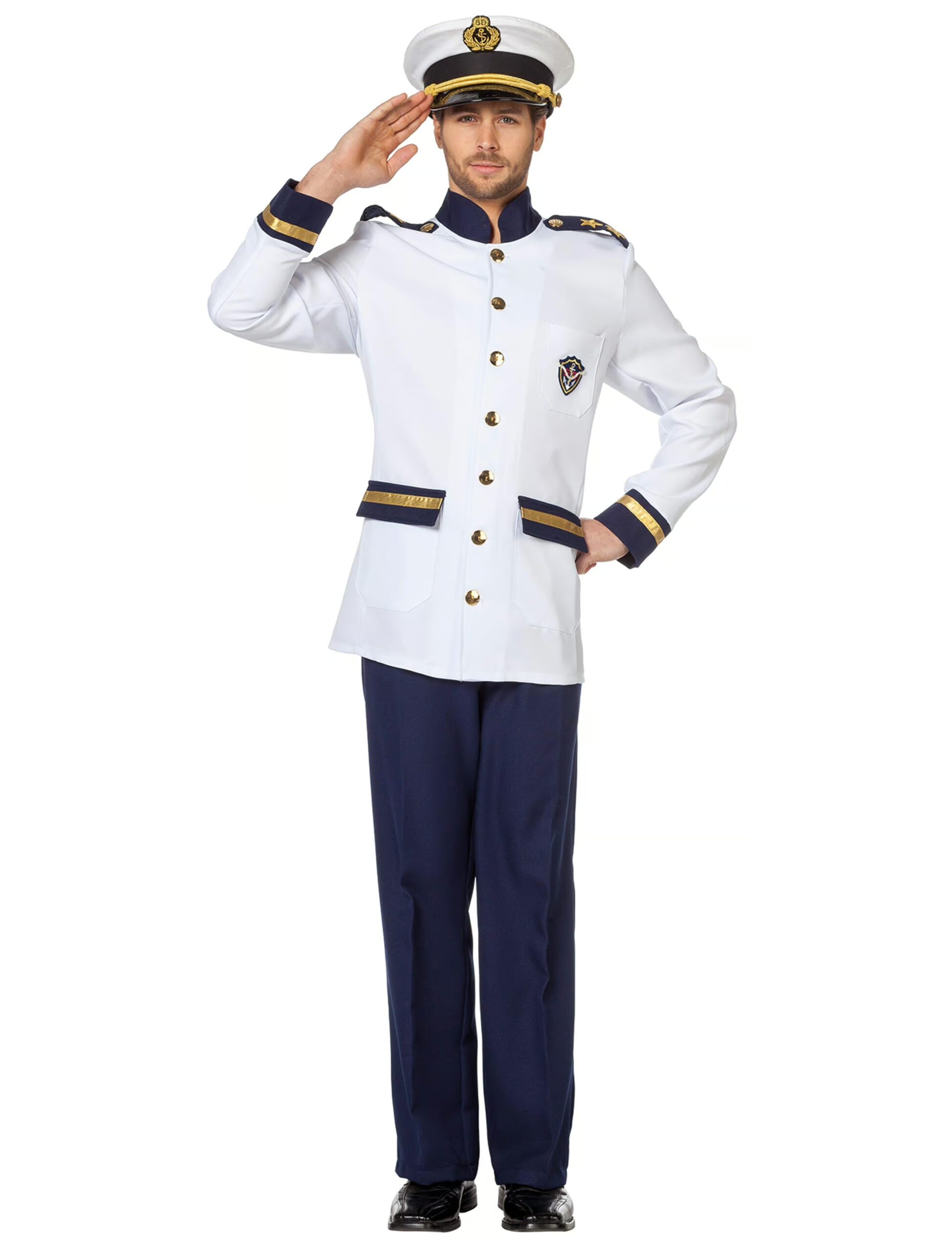 Ahoi Seemann! Hole Dir jetzt das schicke Kostüm für waschechte Kapitäne, das Du bei uns für Herren bestellen kannst. Das maritime Set besteht aus zwei Teilen, die sich aus Jacke und Hose zusammensetzen. Während die Hose einen blauen Look hat, ist die Jacke Weiß gehalten. Passend dazu kannst Du schwarze Schuhe und natürlich eine Seemütze für Kapitäne tragen. Das Outfit eignet sich super für Mottopartys, kann von Dir aber auch an Karneval angezogen werden. Auf jedem Schiff sorgst Du für Ordnung und kannst das Set in mehreren Größen bestellen. Kleine Details wie Schulterblattabzeichen runden den Look für Seemänner perfekt ab.