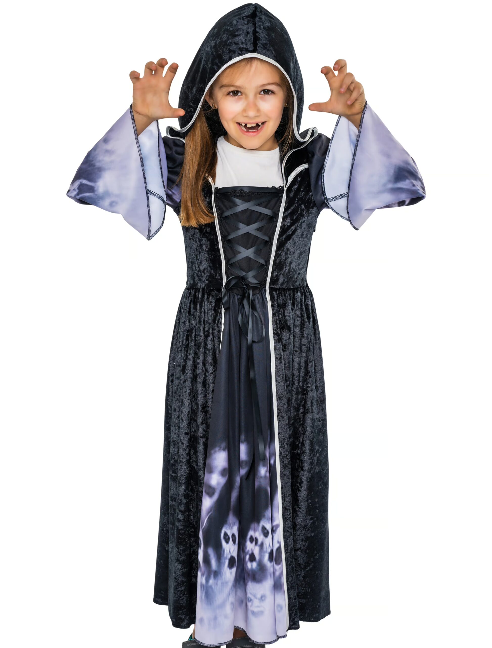 Kapuzenkleid mit Totenköpfen schwarz 104