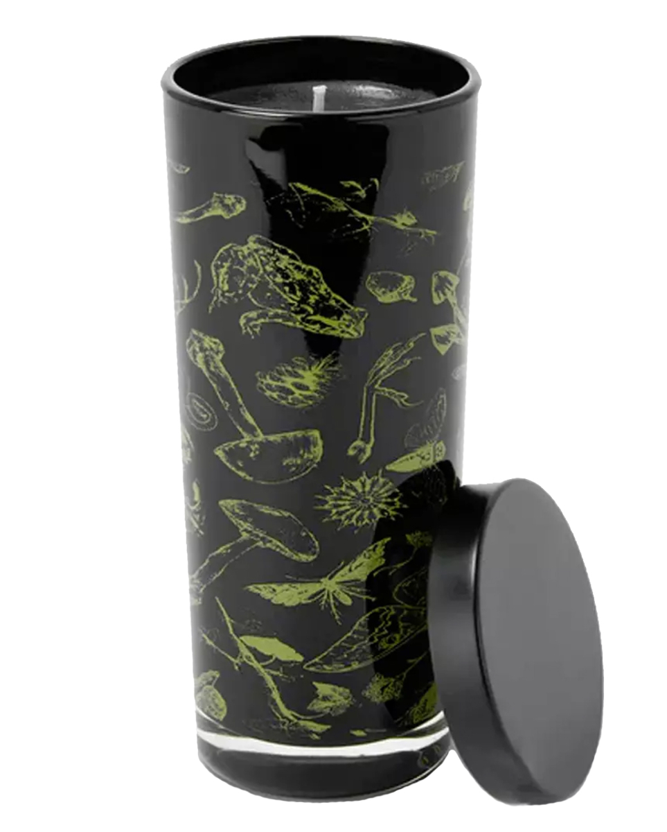 Cottage Core Kerze im Glas von Killstar Nach Feigen duftende Kerze als mystische Gothic Tischdeko Die Cottage Core Kerze im Glas von Killstar sorgt für stimmungsvolles Licht auf dem Tisch. Genießt das wunderbar stilvolle Gothic Deko Accessoire und lasst euch von der düsteren Geschichte, die auf diesem besonderen Kerzenglas erzählt wird, inspirieren. Das Licht der Cottage Core Kerze im Glas von Killstar sorgt für ein morbides Flair. Das mystische Aroma der Feige wird als Gothic Wohnaccessoire oder Geschenkartikel großen Anklang finden. Die duftende Kerze mit Deckel ist übrigens aus reinem Sojawachs. Lieferumfang: 1 x KILLSTAR Cottage Core Kerze im Glas Farbe: Schwarz, Grün Größe: 15 x 6,5 cm Material: 100 % Glas, 100% Sojawachs Statement Feigen Duft Kerze im Glas mit Deckel Der Artikel ist ein Wohnaccessoire und kein Spielzeug. Nicht für Kinder unter 3 Jahren geeignet. Kann Kleinteile enthalten, die verschluckt werden können – Erstickungsgefahr. Von Feuer und offenen Flammen fernhalten.