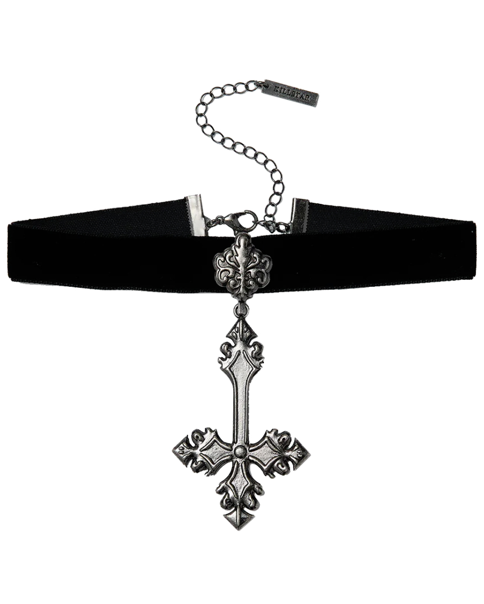 Crossed Fates Choker von KILLSTAR Schwarzes Gothic Halsband mit umgedrehtem Kreuz Anhänger Der Crossed Fates Choker von KILLSTAR ist ein Ausdruck deiner einzigartigen Persönlichkeit und deines unkonventionellen Stils. Dieses auffällige Gothic-Kreuz am weichen Samthalsband verleiht jedem Outfit eine tiefe, mystische Note. Der Crossed Fates Choker von KILLSTAR besteht aus Polyester und einer Zinklegierung, was ihm sowohl Haltbarkeit als auch einen angenehmen Tragekomfort verleiht. Dank der verstellbaren Schließe lässt sich der Choker leicht anlegen und individuell anpassen. Lieferumfang: 1 x Crossed Fates Choker von KILLSTAR Farbe: Schwarz, Silber Größe: One Size Material: Polyester, Zinklegierung Passend für Halsumfang von ca. 33 cm – 40 cm Verstellbare Schließe Auffälliges Gothic Kreuz Mode Accessoire Halsband aus weichem Samt