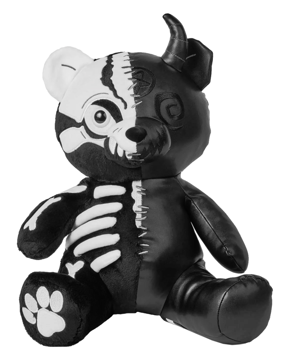 Duplexity Relic Plüschtier von Killstar als Gothic Deko Verschenke das außergewöhnliche Kuscheltier in der KREEPTURE Limited Edition an einen Gothic Fan Wenn du denkst, dass es zwischen Himmel und Hölle mehr Platz für düstere Geschöpfe geben soll, dann gib dem Duplexity Relic Plüschtier von Killstar ein neues Zuhause. Der Gothic Teddybär wird sich von seiner besten Seite zeigen. Davon hat er sogar zwei. Der Duplexity Relic Plüschtier von Killstar, der direkt aus der Hölle zu kommen scheint, ist mit vielen teuflischen Details ausgestattet, wie dem Horn oder dem Skelett seiner flauschigen Seite. Das Gothic Plüschtier ist ca. 37 cm hoch und schwarz-weiß. Lieferumfang: 1 x Duplexity Relic Plüschtier von Killstar Farbe: Schwarz, Weiß Größe: ca. 37 cm Material: 100 % Polyester Limited Edition KREEPTURE Weicher Deluxe Plüsch Eine Hälfte flauschiges Bärenskelett Eine Hälfte Kunstleder Teufelsbär Gefüttert mit Hocus Pocus Nicht für Kinder unter 3 Jahren geeignet. Kann Kleinteile enthalten, die verschluckt werden können – Erstickungsgefahr. Von Feuer und offenen Flammen fernhalten.