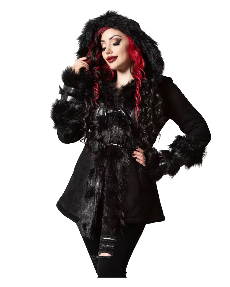 Schwarzer “Flies By Night” Kunstfell Mantel von KILLSTAR Luxuriöser Kunstpelzmantel als Wintermode für Gothic Fans Der “Flies By Night” Kunstfell Mantel begeistert mit vielen Details, die einer echten Gothic Queen würdig sind. Dein dunkles Herz wird den weichen Mantel lieben, der mit die Kunstpelz-Akzenten und Schnallen in Fledermausform begeistert! Dieser Mantel vervollständigt jeden Herbst/Winter-Look! Der “Flies By Night” Kunstfell Mantel von KILLSTAR ist schwarz und hat eine übergroße Kapuze für den Kopf. Die Kunstpelz Applikationen am Saum und an den Ärmel lassen dich wie eine Königin aussehen. Lieferumfang: 1 x Schwarzer “Flies By Night” Kunstfell Mantel von KILLSTAR Farbe: Schwarz Größe: S, M, L, XL Material: 80% Acryl, 20% Elastan Schwarzer Gothic Mantel aus Kunstfell Übergroße Kapuze Übertriebene Manschetten Fledermaus Schnallen als Verzierung Kalt waschen – Schonwaschgang Größe: S M L XL EU 38 40 42 44 UK 10 12 14 16 US 6 8 10 12 Brustumfang: ca. 87 cm ca. 92 cm ca. 97 cm ca. 102 cm Taillenumfang: ca. 69 cm ca. 74 cm ca. 79 cm ca. 84 cm Hüftumfang: ca. 94 cm ca. 99 cm ca. 104 cm ca. 109 cm Der Artikel ist für Erwachsene und kein Spielzeug. Nicht für Kinder unter 3 Jahren geeignet. Kann Kleinteile enthalten, die verschluckt werden können – Erstickungsgefahr. Von Feuer und offenen Flammen fernhalten.