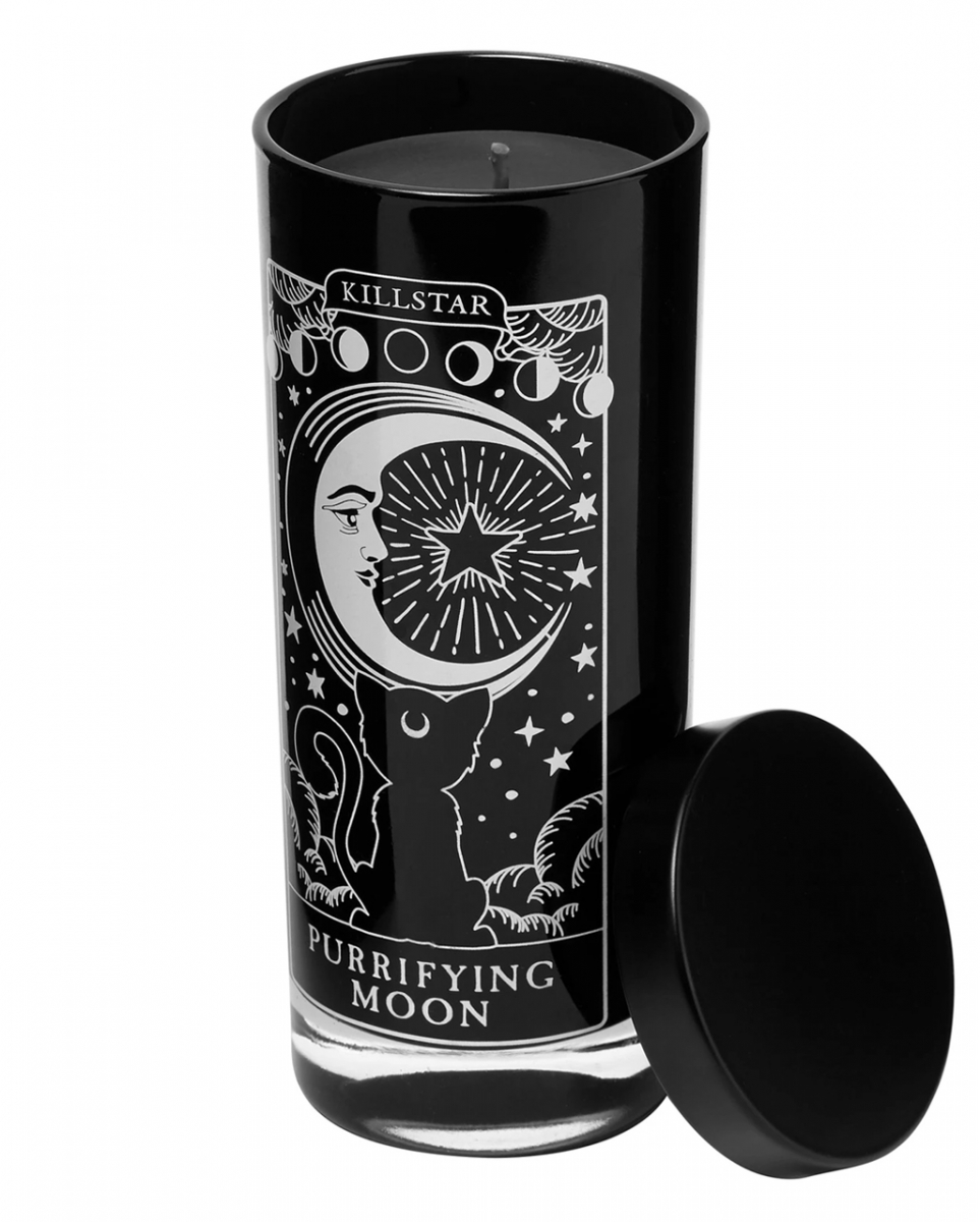 Moonspell Ritual Kerze im Glas von KILLSTAR als Gothic Deko Nach zauberhaften Beeren duftende, okkulte Ritualkerze mit Katze und Mond als Motiv Die Moonspell Ritual Kerze im Glas von KILLSTAR betört mit einem wunderbar aromatischen Beerenduft. Damit ist die Gothic Duftkerze ein mystisches Wohnaccessoire für jeden, der eine stimmungsvolle Atmosphäre in seine vier Wände zaubern will. Die Moonspell Ritual Kerze im Glas von KILLSTAR hat die Duftrichtung Beere. Das Glas ist ca. 6,5 x 15 cm hoch und mit schwarzem Wachs gefüllt. Zum Löschen der Flamme kannst du den Deckel aufs Glas klappen. Die Kerze nicht unbeaufsichtigt brennen lassen! Lieferumfang: 1 x Moonspell Ritual Kerze im Glas von KILLSTAR Farbe: Schwarz, Weiß Größe: ca. 6,5 x 15 cm Material: Glas, Wachs Duft: Beere Schwarze Kerze im Glaszylinder mit Katzen und Mond Motiv Schwarzes Kerzenwachs und Docht Aromatischer Beeren Duft Deckel zum Löschen der Flamme Gothic Deko und Mystisches Wohnaccessoire Der Artikel ist ein Geschenkartikel. Nicht für Kinder unter 3 Jahren geeignet. Kann Kleinteile enthalten, die verschluckt werden können – Erstickungsgefahr. Von Feuer und offenen Flammen fernhalten.