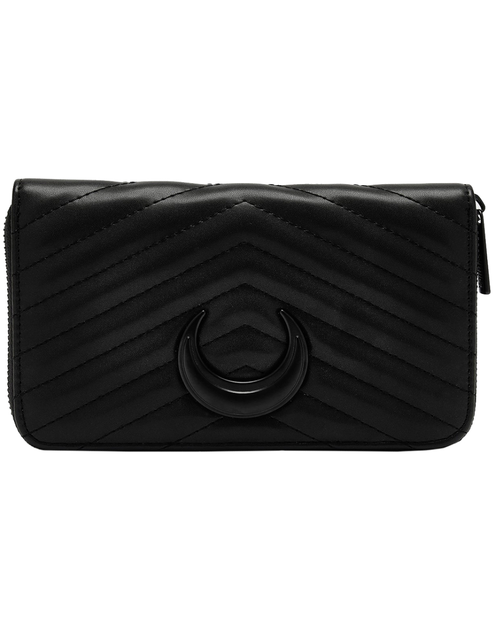 Moonthorn Geldbörse von KILLSTAR Schwarzer Gothic Geldbeutel im Halbmond Design Die Moonthorn Geldbörse von KILLSTAR ist weit mehr als ein bloßes Zubehör, sie ist ein echtes Fashion-Statement. Mit ihrem markanten Look und den funkelnden Metallakzenten strahlt sie eine mysteriöse Faszination aus, die sowohl auf Festivals als auch im nächtlichen Stadtleben oder im täglichen Gebrauch Köpfe verdrehen wird. Sie verleiht jedem Gothic-Outfit den finalen, unverwechselbaren Touch. Die Moonthorn Geldbörse von KILLSTAR ist aus hochwertigem weichen Kunstleder gefertigt, das nicht nur robust, sondern auch pflegeleicht ist. Das Material besteht aus 100% Polyurethan mit einem Innenfutter aus 100% Polyester, was eine lange Haltbarkeit garantiert. Die durchdachte Aufteilung beinhaltet praktische Kartenfächer sowie ein Münzfach mit Reißverschluss, die deine Wertsachen sicher und organisiert halten. Lieferumfang: 1 x Moonthorn Geldbörse von KILLSTAR Farbe: Schwarz Größe: One Size Material: 100% Polyurethan, Innenfutter: 100% Polyester Weiches Kunstleder Auffälliges Design mit Metallbeschlägen Praktische Kartenfächer Hauptfach und Münzfach mit Reißverschluss